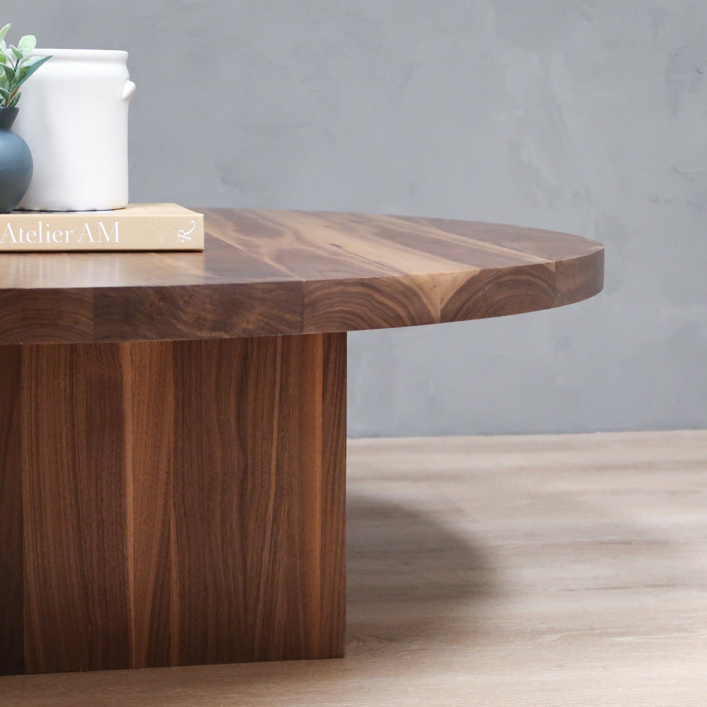 Our coffee tables are made in the USA of solid natural walnut hardwood. Natural walnut has one of the most beautiful grain patterns and is one of the most desired wood species. Due to the natural wood grain, your coffee table will be one of a kind as there is no other alike.