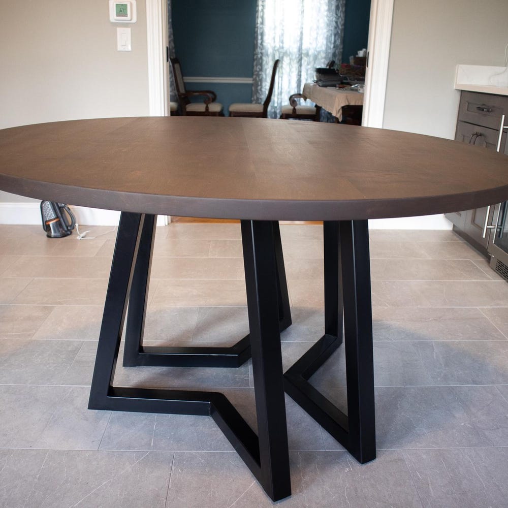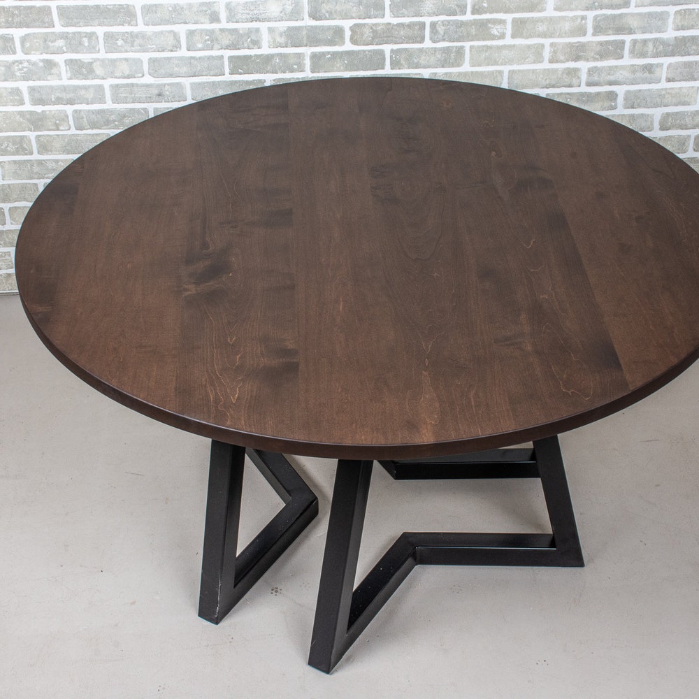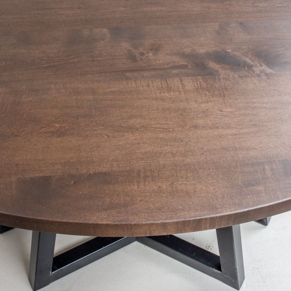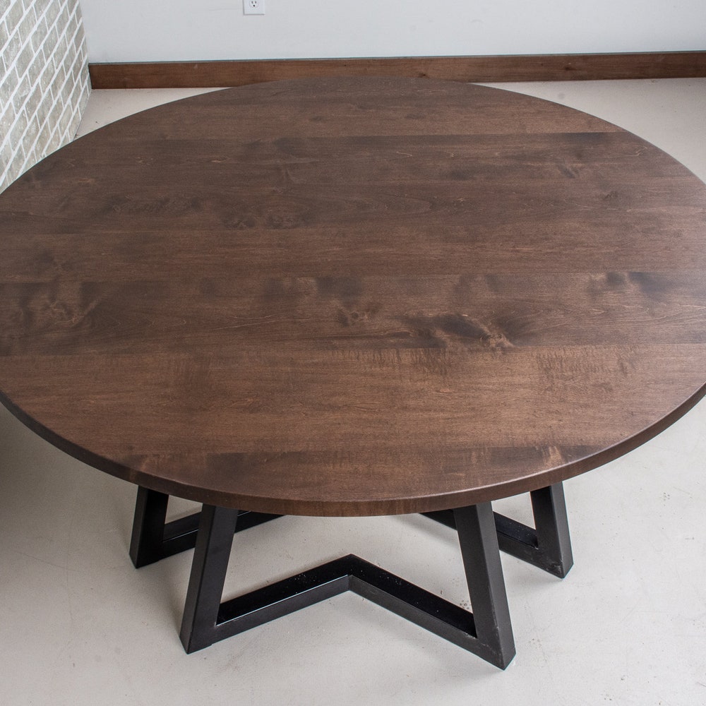 You can’t go wrong with the classic good looks and functionality of this round wood table. Made of maple and sitting on steel legs, this table is durable and ready to be the center of your household. We build every table to order so there are many ways to make this table perfect for you.