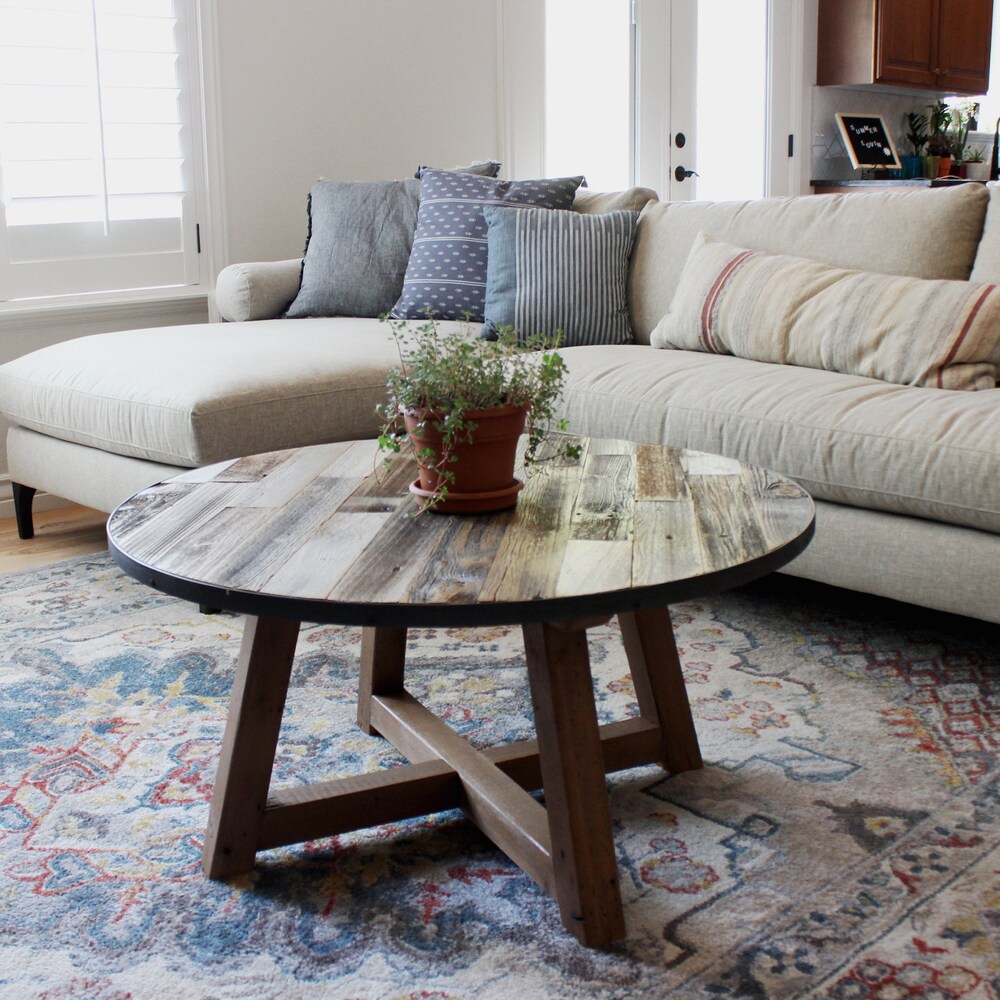 Your coffee table is at the center of your living room…which is at the center of your house…which is at the center of your life…which is at the center of your universe! Don’t settle for the usual uninspiring options available at your local furniture store! Make a powerful modern rustic industrial farmhouse statement with a beautiful AllBarnWood round reclaimed wood coffee table! This unique jaw-dropping, conversation-stopping circle coffee table can be the last piece of awe-inspiring farmhouse furniture to complete a room or it can be the farm style piece to get your decor going in the right direction. Either way, you can’t go wrong with this circle wood coffee table.
