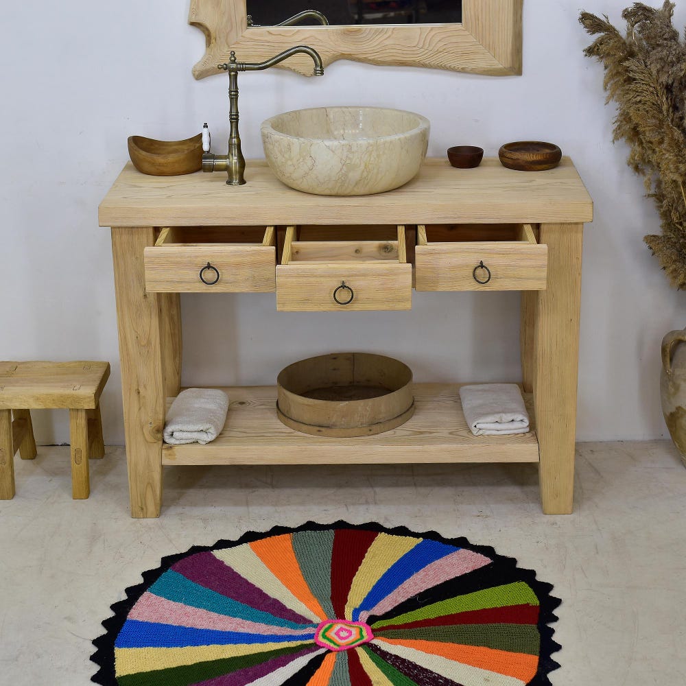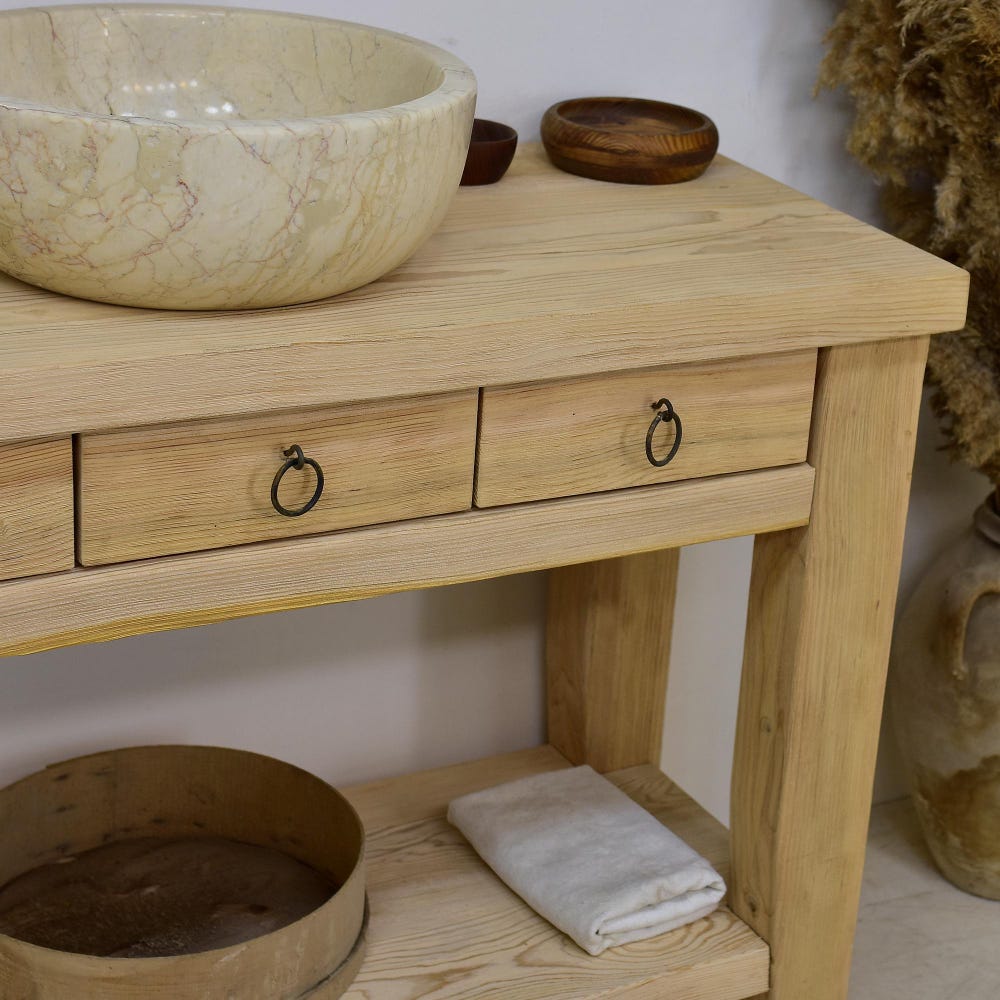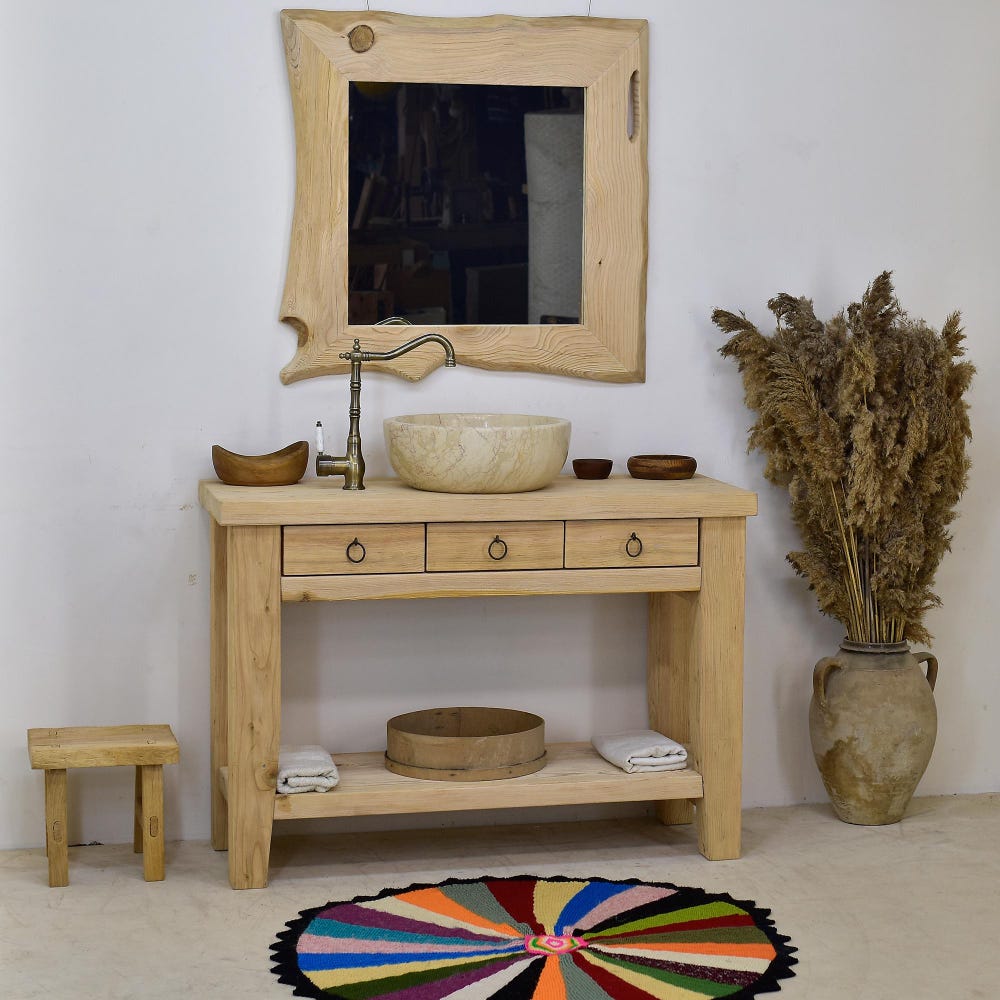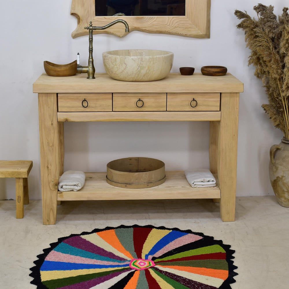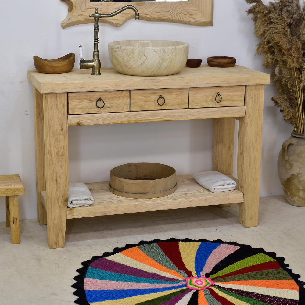 Rustic Bathroom Sink, Reclaimed Wood Live Edge Sink with Drawer Vanity Sink Farmhouse Bathroom Sink Wood Decor Gift Medieval Handmade