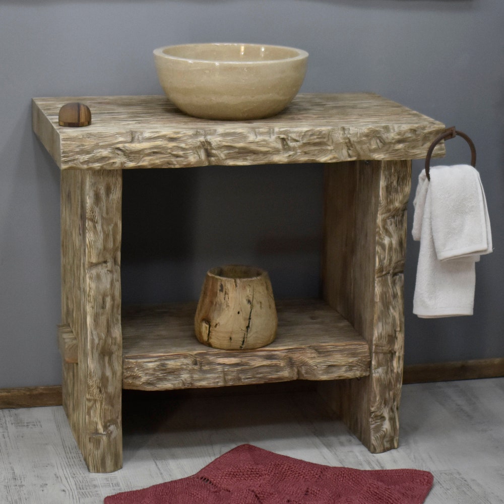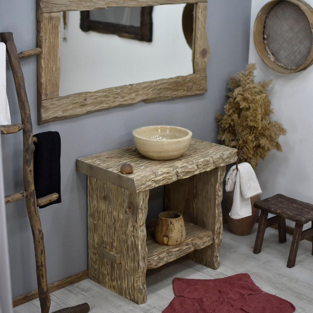Rustic bathroom vanity reclaimed wood live edge vanities sink farmhouse wooden decor gift for her