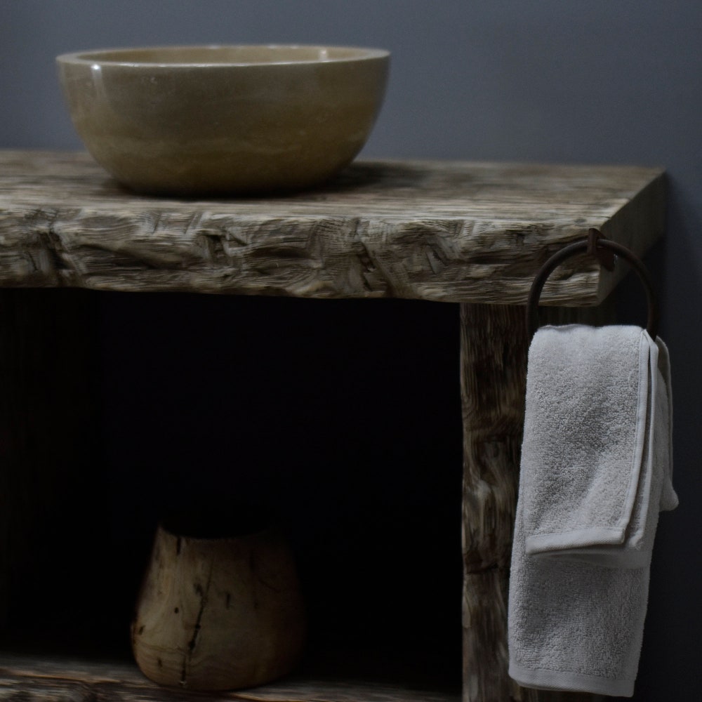 With its rare texture, robust structure and totally natural beauty, this bathroom vanity will be an ideal handcrafted touch in your restroom that will definitely make your guests use and leave in admiration just as you yourself will do.