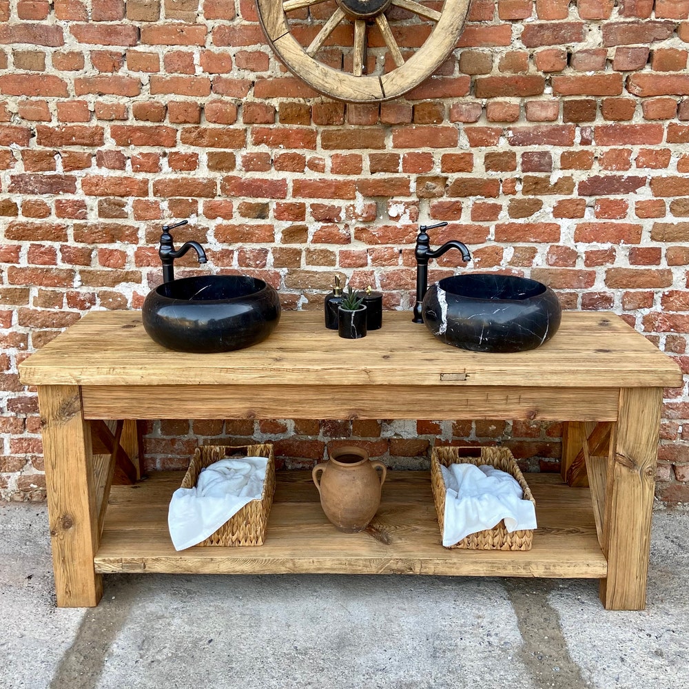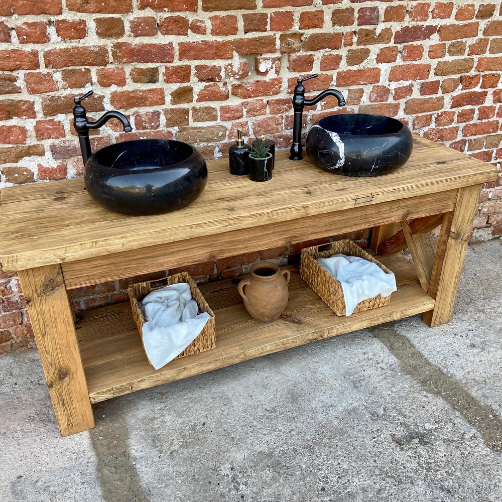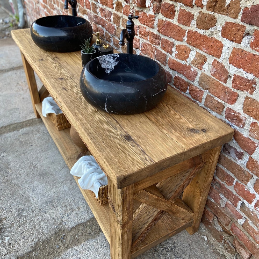 Rustic Bathroom Vanity Double Sink, Reclaimed Wood Bathroom Vanity for Vessel Sink, 72 inch Vanity Rustic Farmhouse Furniture