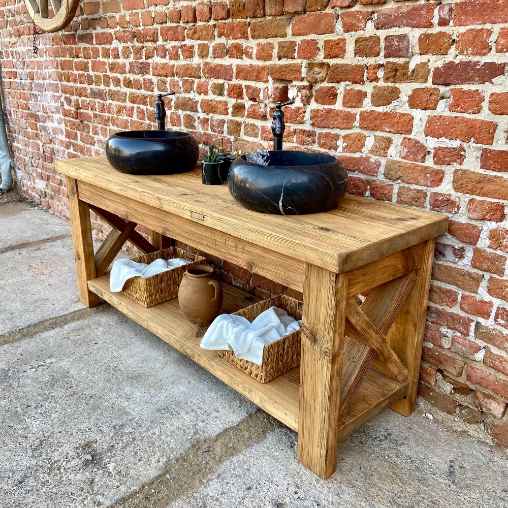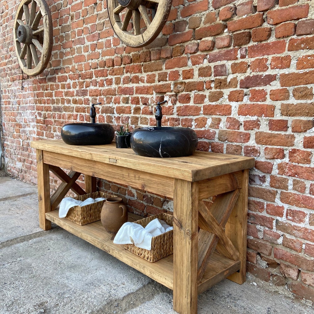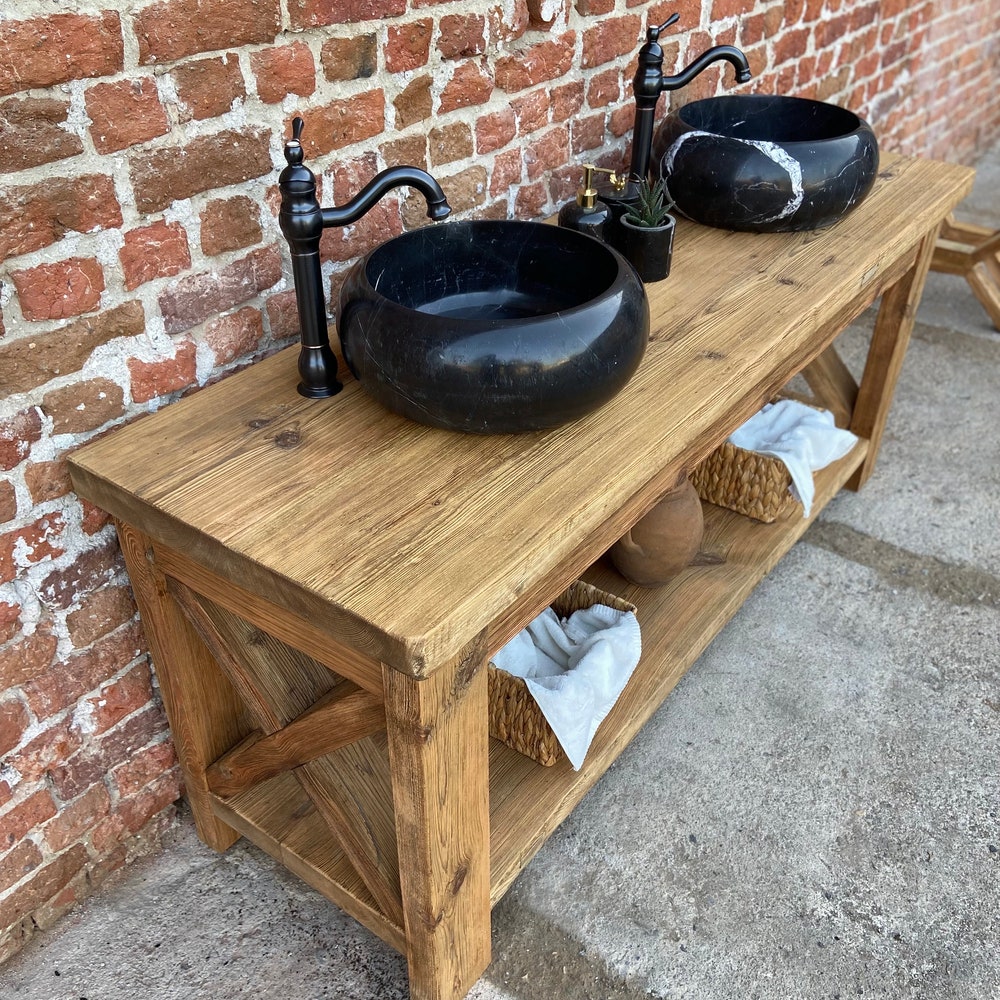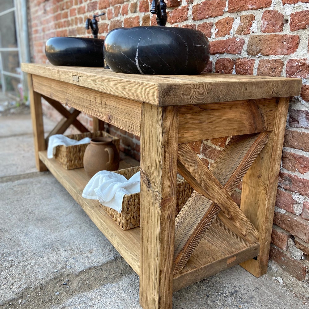 Rustic Bathroom Vanity Double Sink, Reclaimed Wood Bathroom Vanity for Vessel Sink, 72 inch Vanity Rustic Farmhouse Furniture