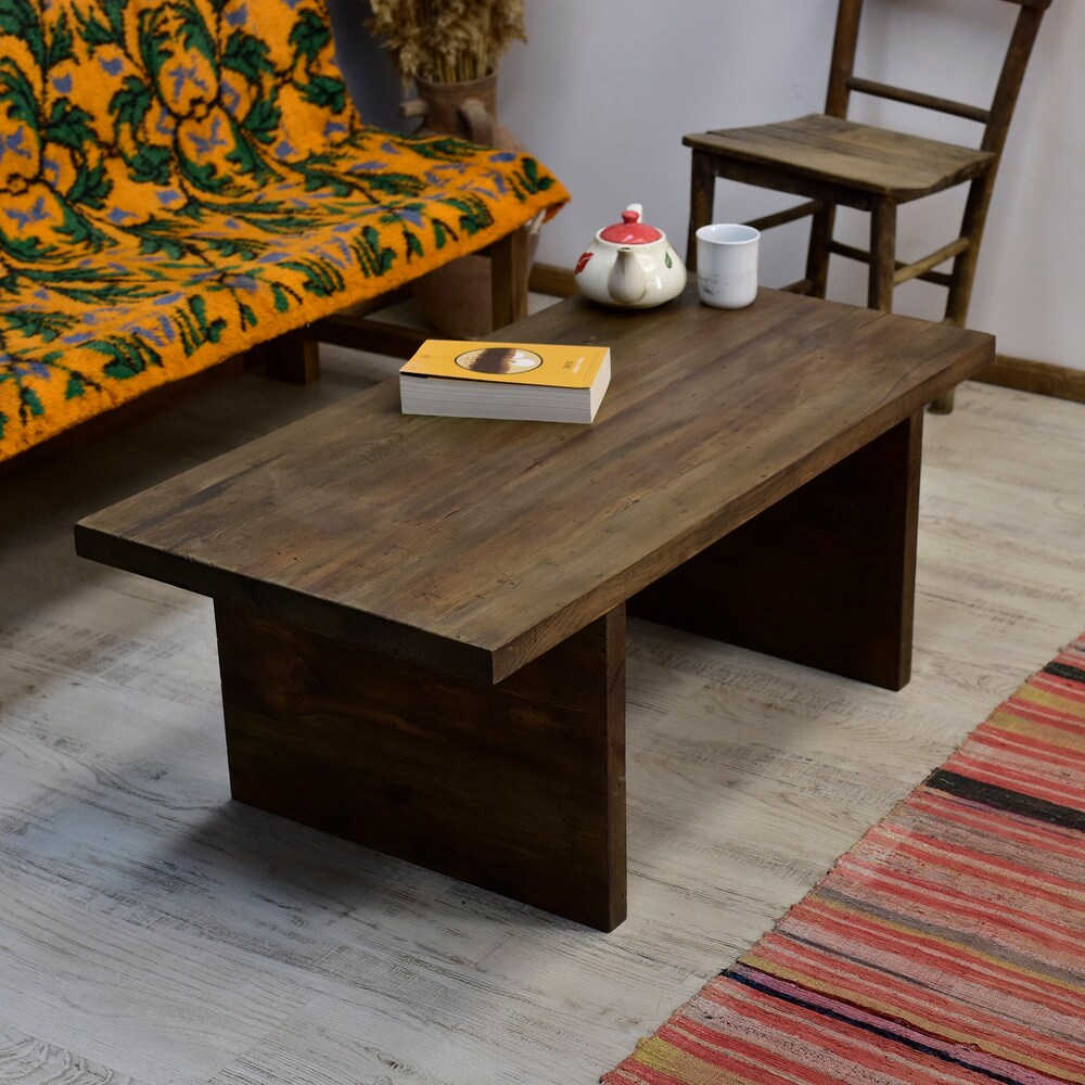 Rustic coffee table for living room live edge side table wooden rustic mid-century farmhouse furniture rectangular vintage-like