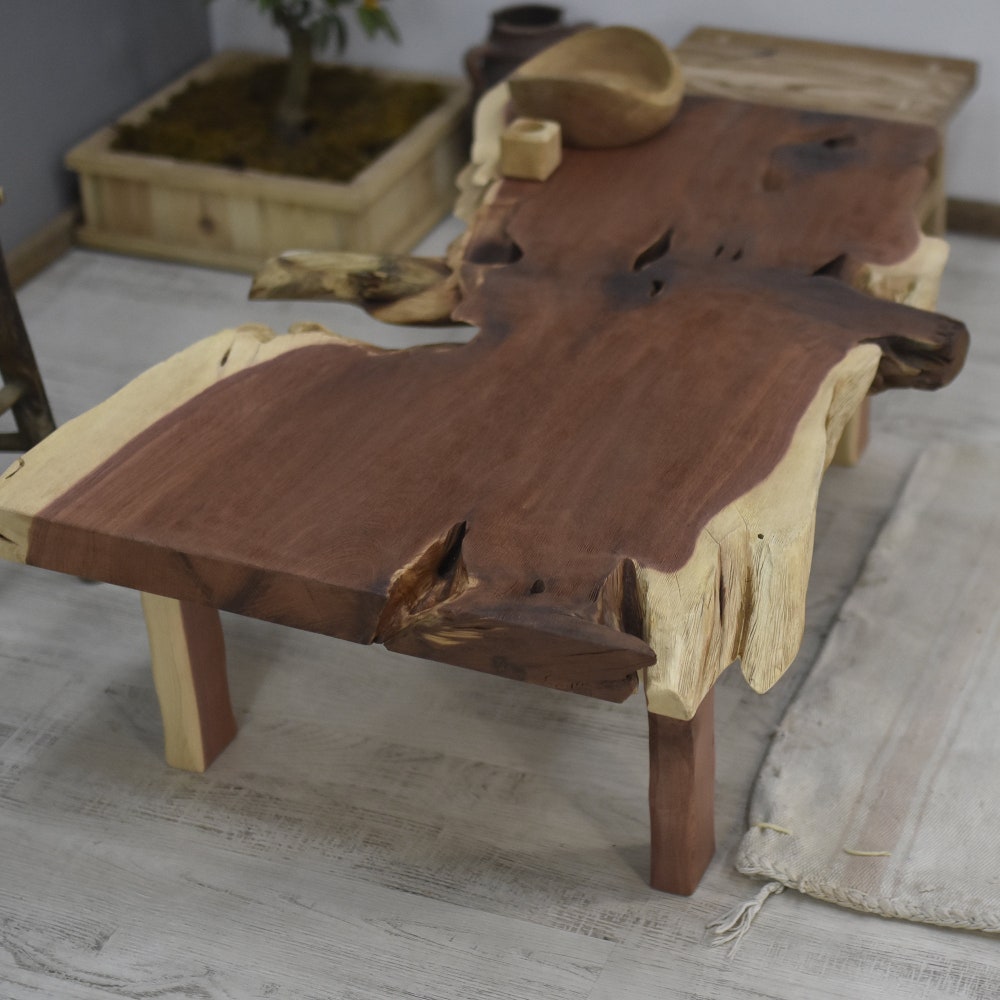 Thanks to its health-friendly, and thus user-friendly handmade natural form, it can be used anywhere you wish in your place -from living rooms to hallways. Its live edge touch and harmless wood preservatives, in addition to its features above, make it an exclusive choice.