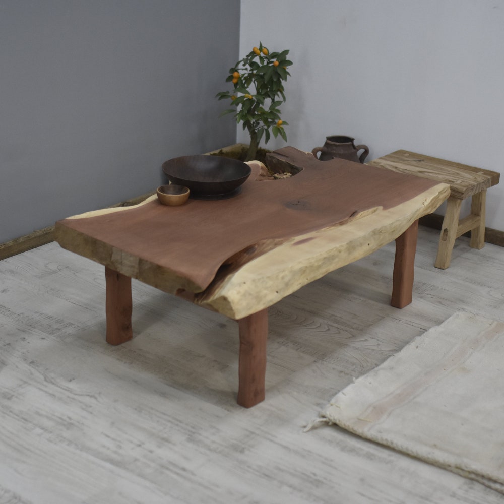 Thanks to its health-friendly, and thus user-friendly handmade natural form, it can be used anywhere you wish in your place -from living rooms to hallways. Its live edge touch and harmless wood preservatives, in addition to its features above, make it an exclusive choice.