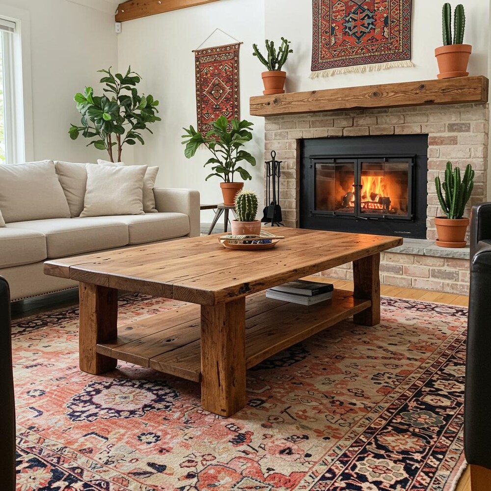 • Rustic Square Coffee Table: Seamlessly integrates into any living room with its rustic yet elegant aesthetic.