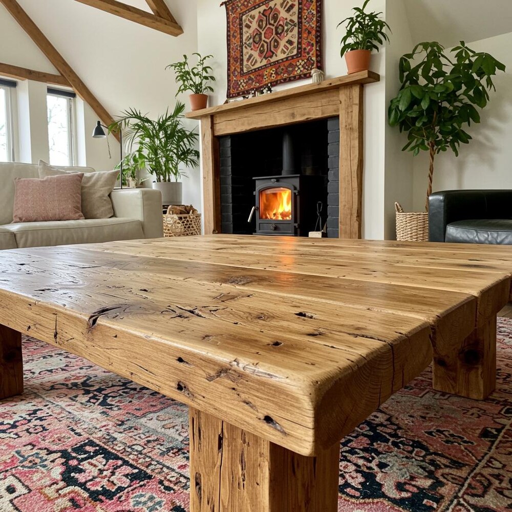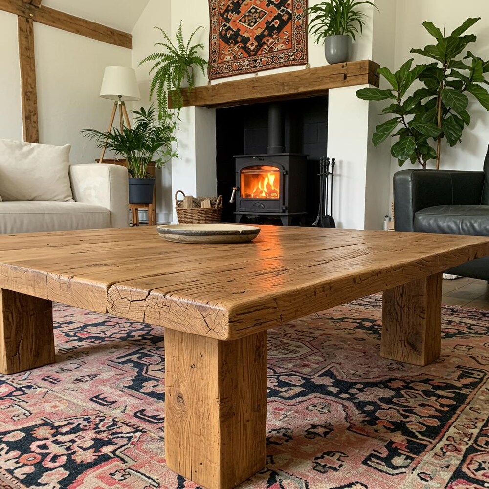 • Rustic Square Coffee Table: Seamlessly integrates into any living room with its rustic yet elegant aesthetic.