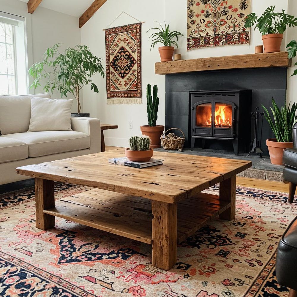 • Rustic Square Coffee Table: Seamlessly integrates into any living room with its rustic yet elegant aesthetic.
