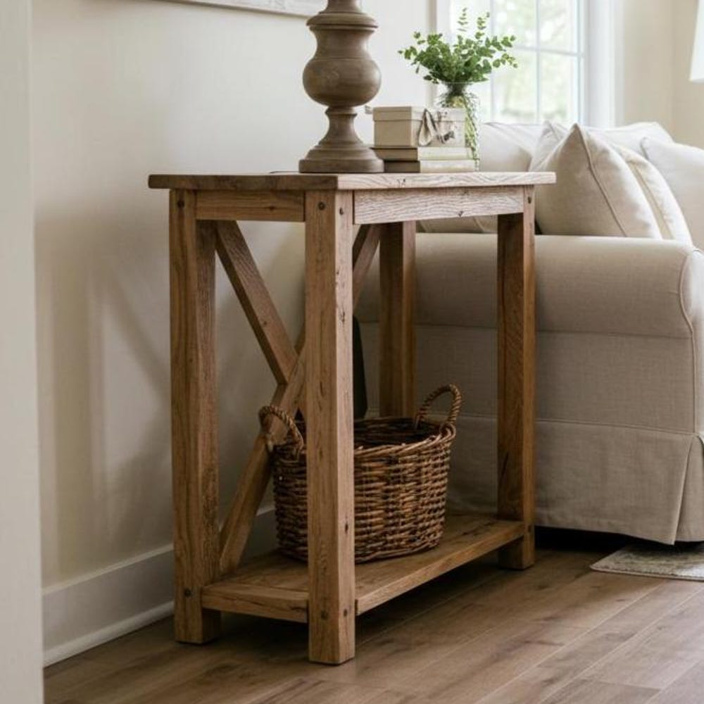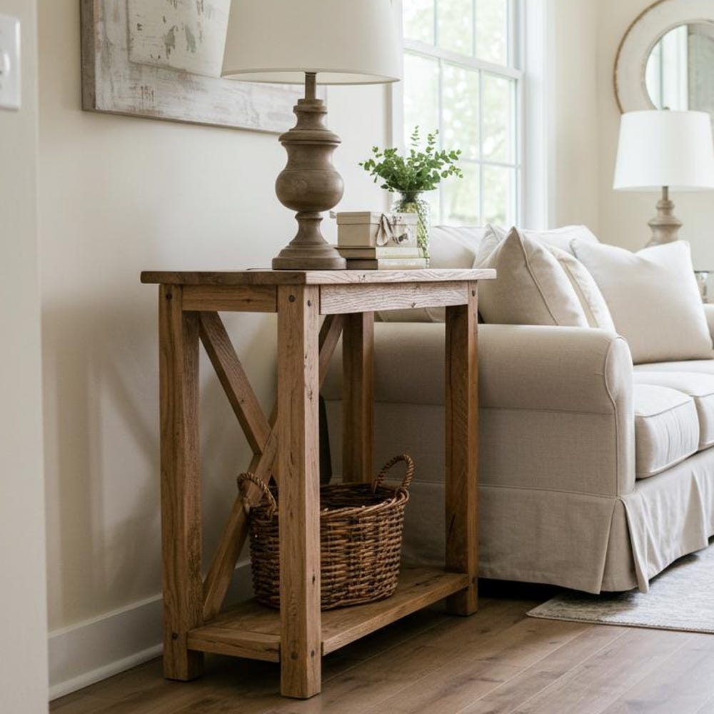 This rustic console table brings farmhouse charm to any entryway or hallway. Handcrafted from reclaimed wood with natural character and unique grain patterns that tell a story. The practical drawer provides hidden storage for keys and small items.