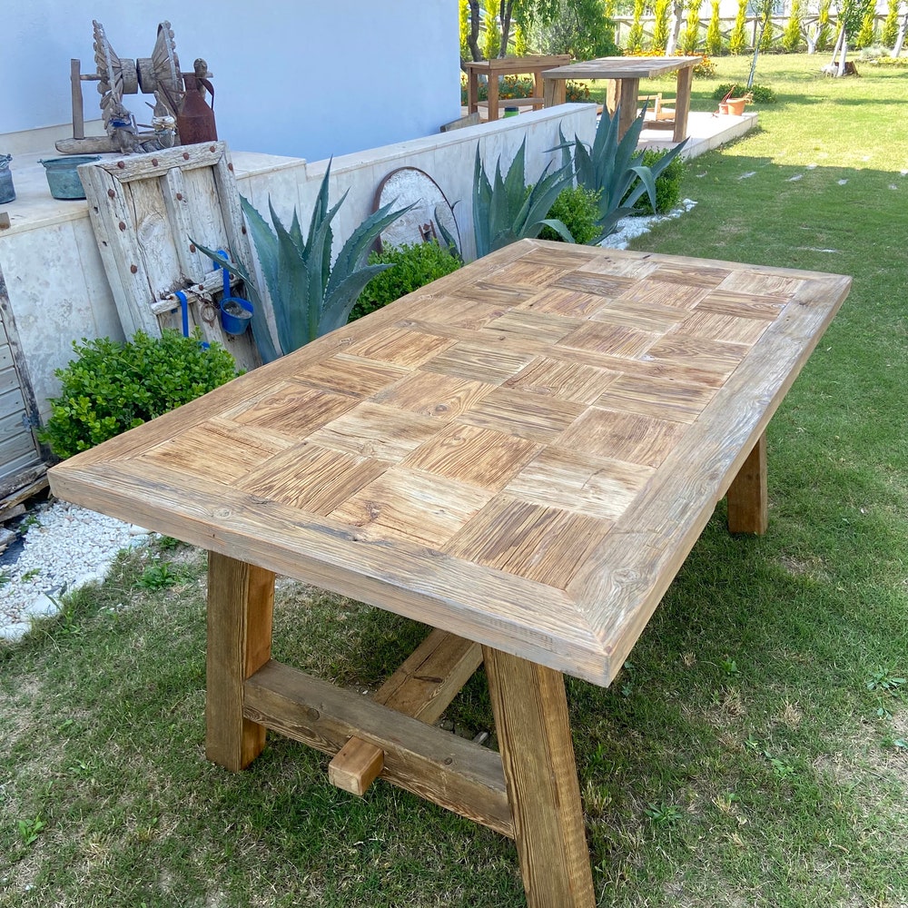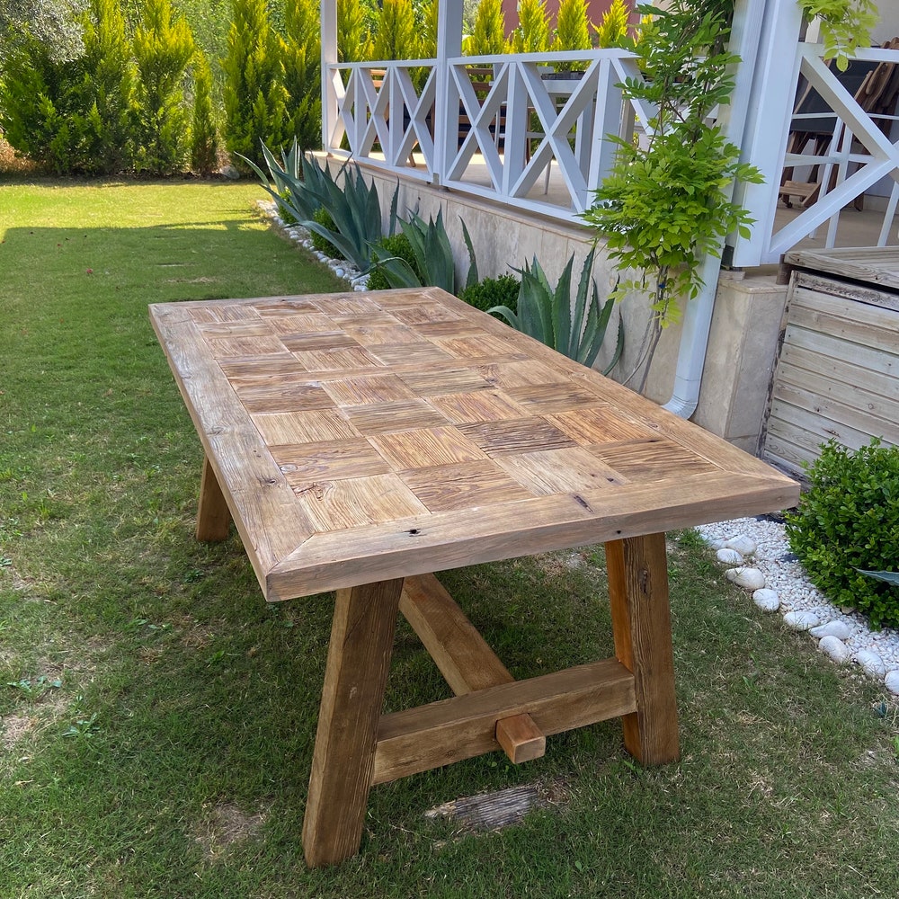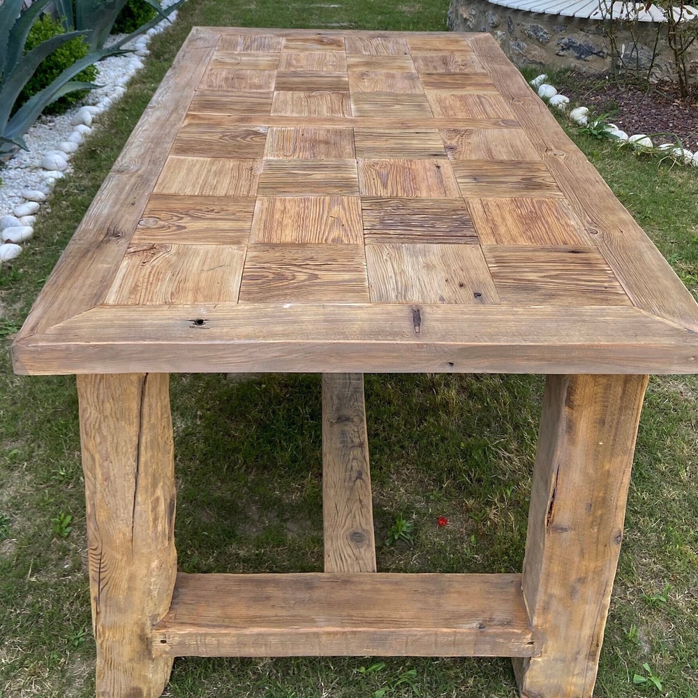 ♻️ Our unique Dining Table is made with 60 years old wood. No polish or aging has been applied to the table top you see in the picture. I would like you to take a detailed look at the natural color and texture of the wood.