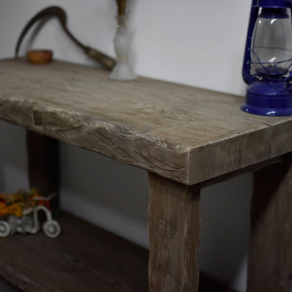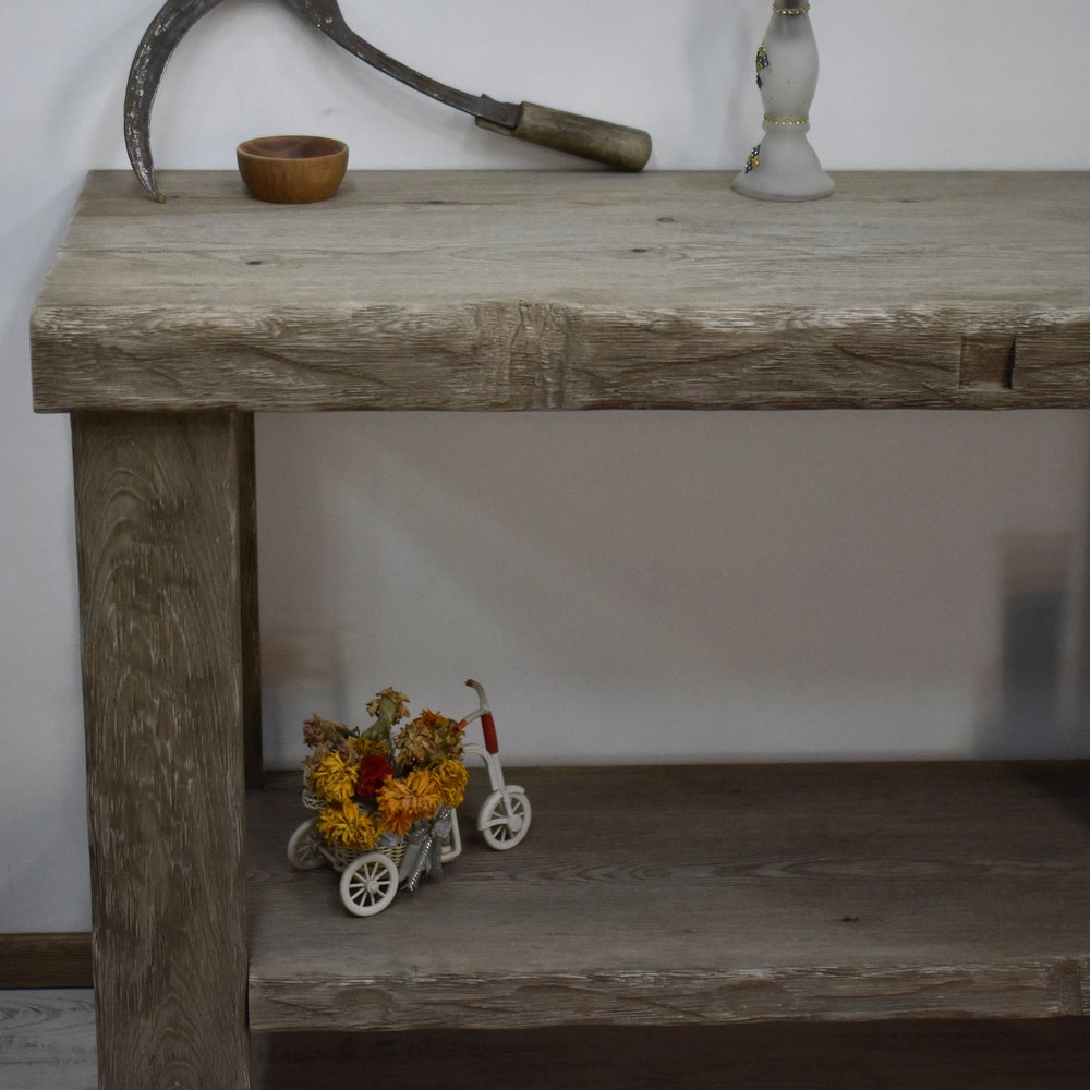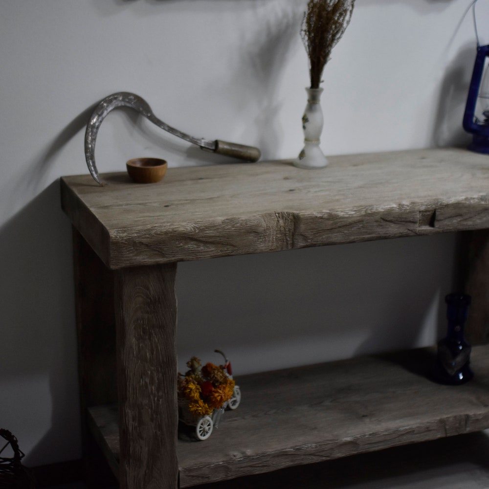 This exclusively handmade natural rustic console table is a stylish furniture to enhance the decoration of your living room, entryway or anywhere you wish it to be.