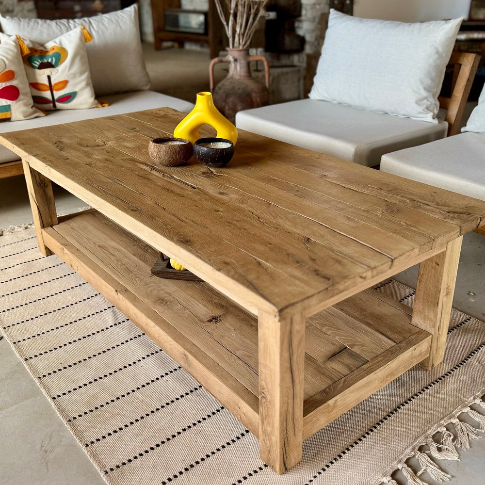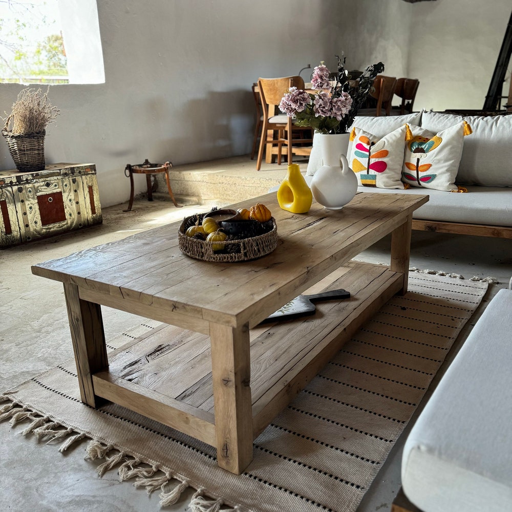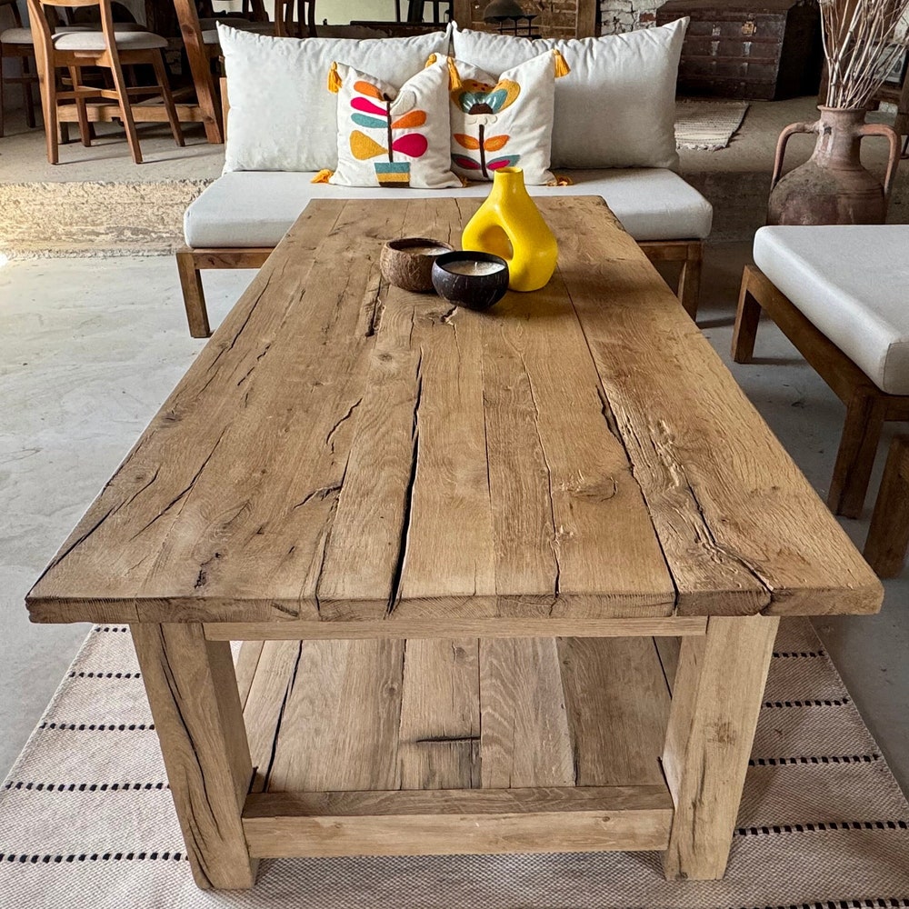 Rustic Farmhouse Coffee Table with Shelf, Natural Wood Coffee Table, LivingRoom Furniture, Patio Coffee Table Reclaimed Wood