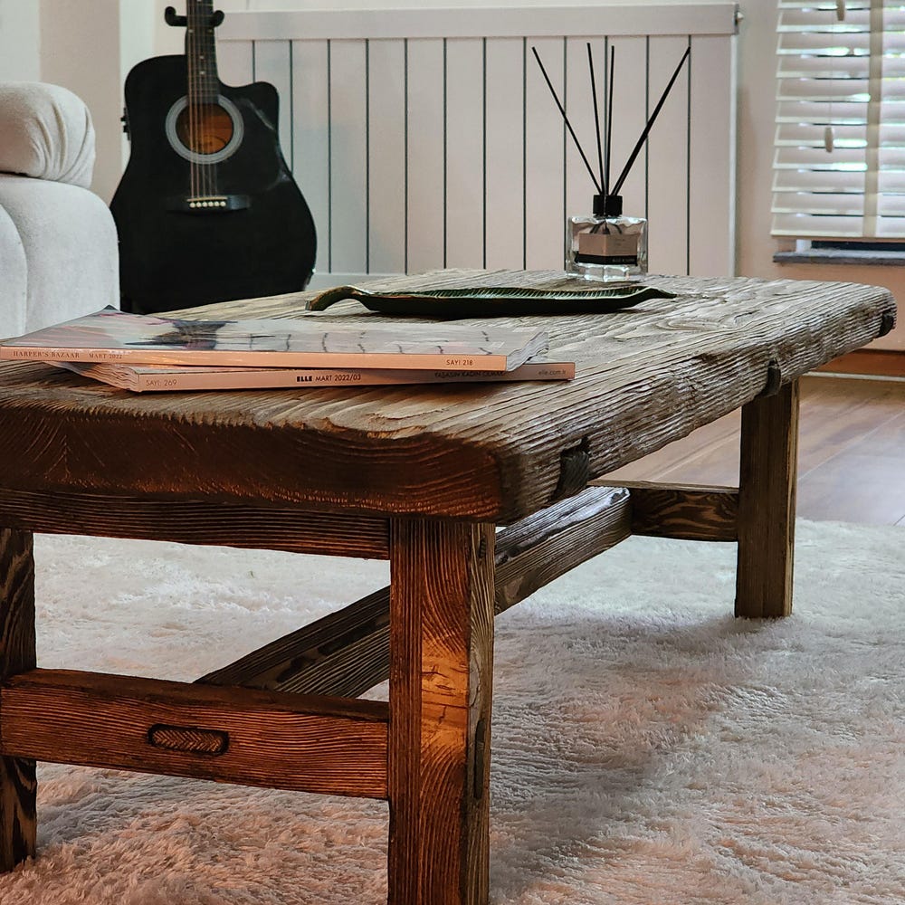 Rustic dark coffee table, perfect for both modern and vintage-inspired living rooms.