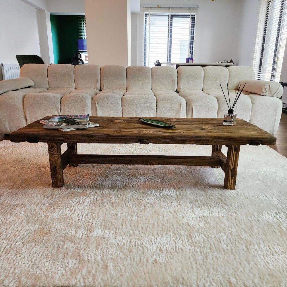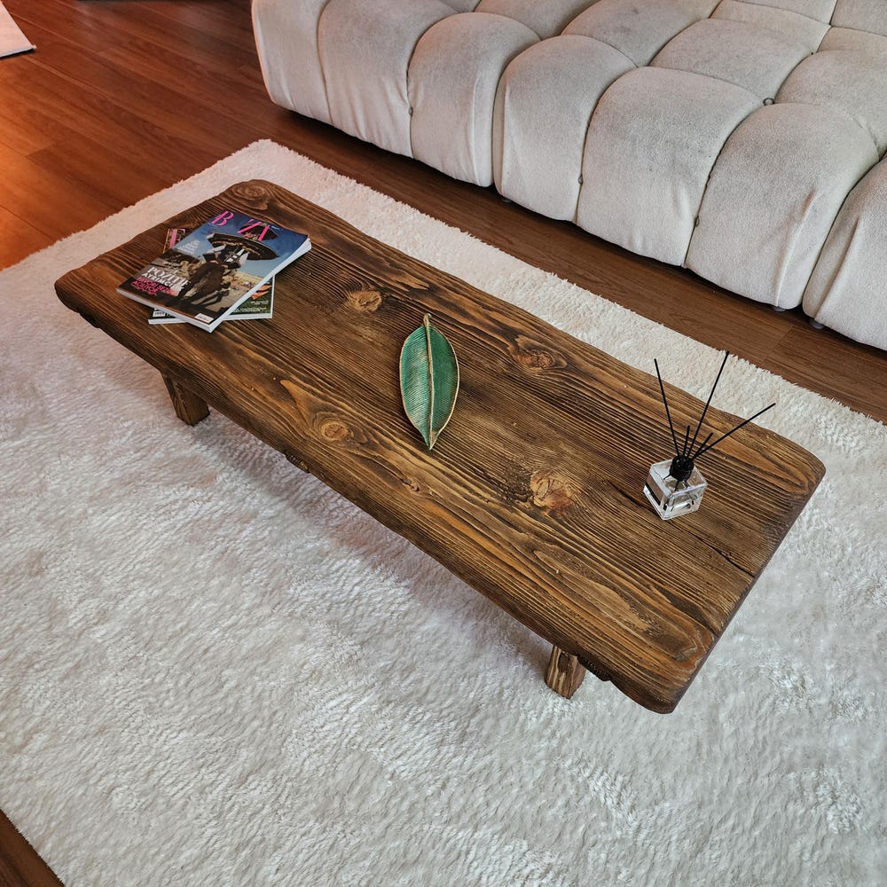 Rustic Handmade Coffee Table – Dark Brown Rectangular Table – Farmhouse Modern Wood Living Room Decor, Solid Wood Low Coffee Table