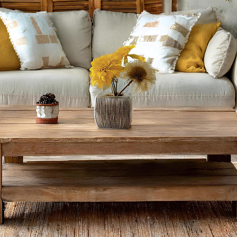 • Premium Solid Wood: Built to last, this coffee table is crafted from durable, natural wood, showcasing beautiful grains and rustic imperfections that make each piece unique.