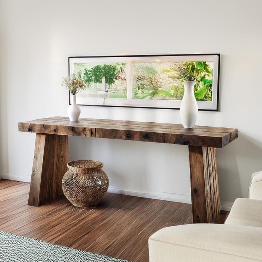 • Premium Solid Wood: Built to last, this console table is crafted from durable, natural wood, showcasing beautiful grains and rustic imperfections that make each piece unique.