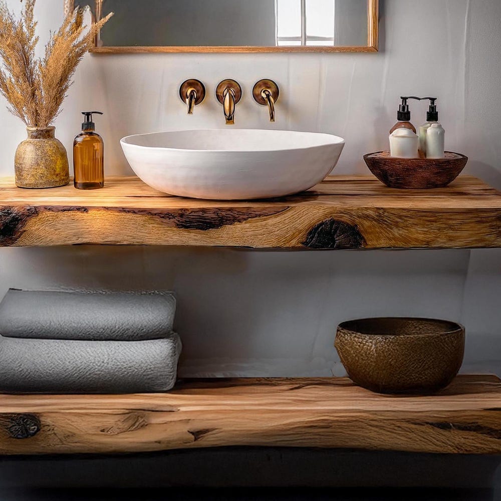 rustic handmade custom wooden floating bathroom vanity old style farmhouse decor sink table live edge reclaimed solid wood shelf countertop Each vanity is thoughtfully designed to enhance your bathroom’s aesthetic with a warm, farmhouse style that combines elegance and function. Key Features: • Premium Solid Wood: Built to last, this vanity is crafted from durable, […]