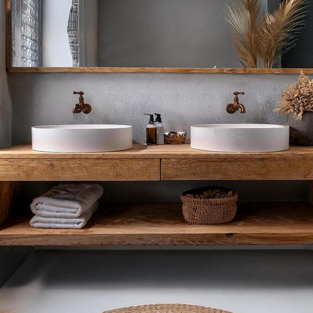 • Premium Solid Wood: Built to last, this vanity is crafted from durable, natural wood, showcasing beautiful grains and rustic imperfections that make each piece unique.