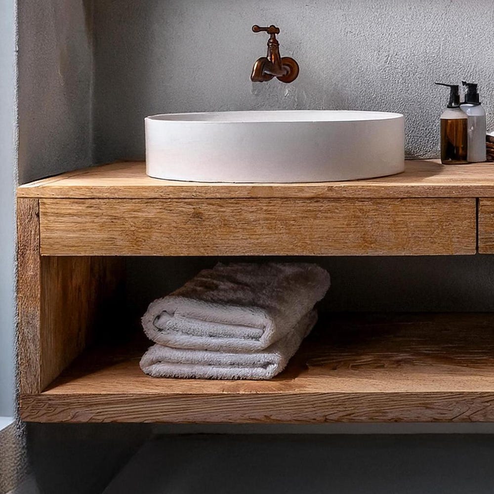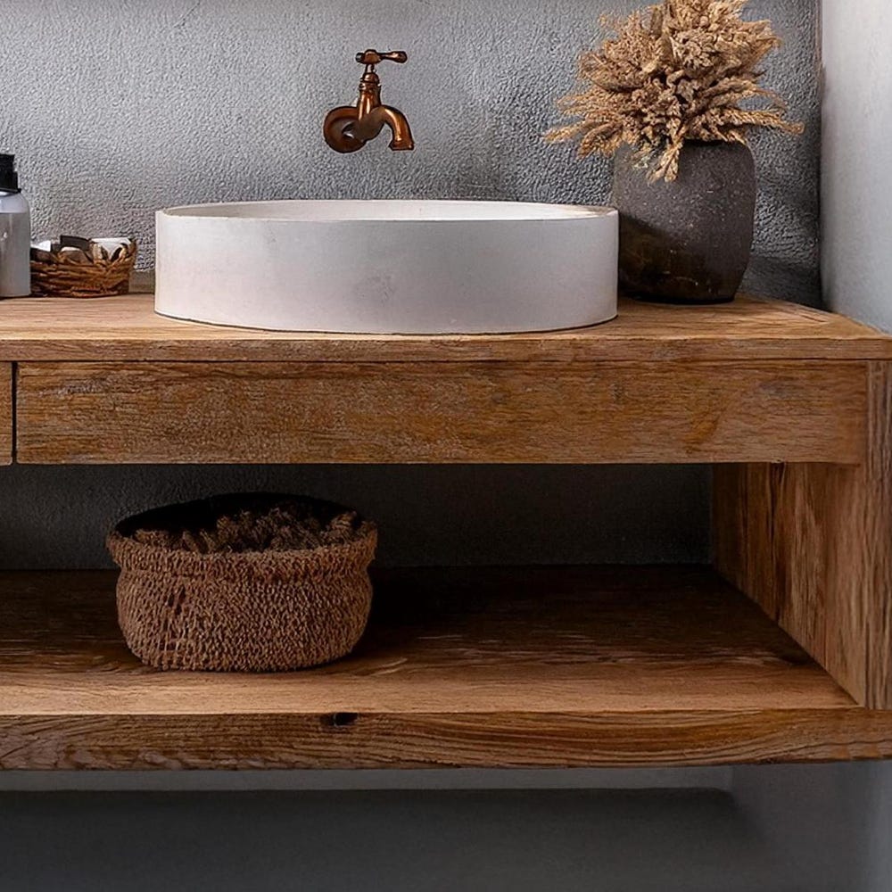 rustic handmade custom wooden floating bathroom vanity old style farmhouse decor sink table live edge reclaimed solid wood shelf countertop
