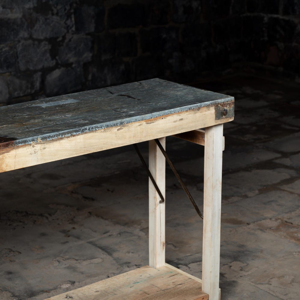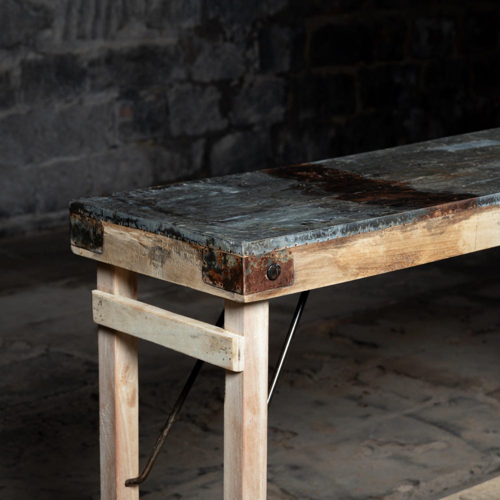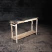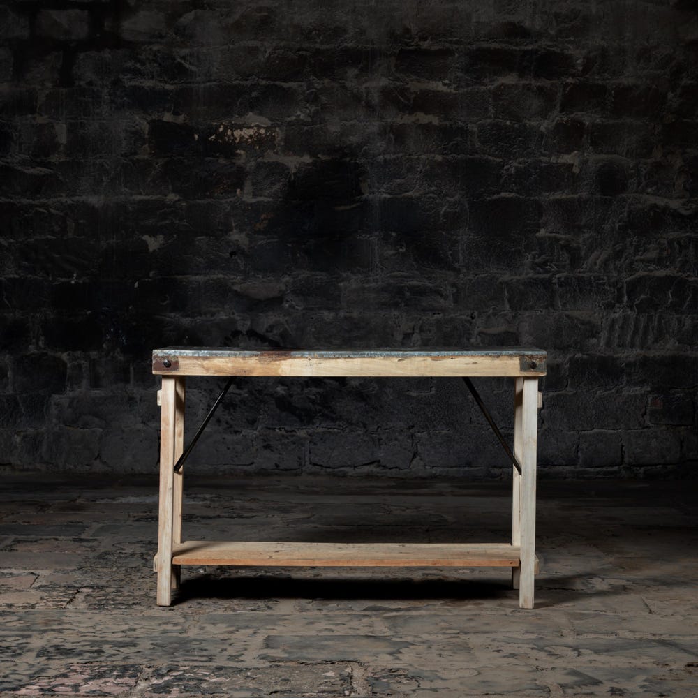 – This Vintage console table has been built from natural reclaimed wood and rustic iron table top. This Table is complete handmade.