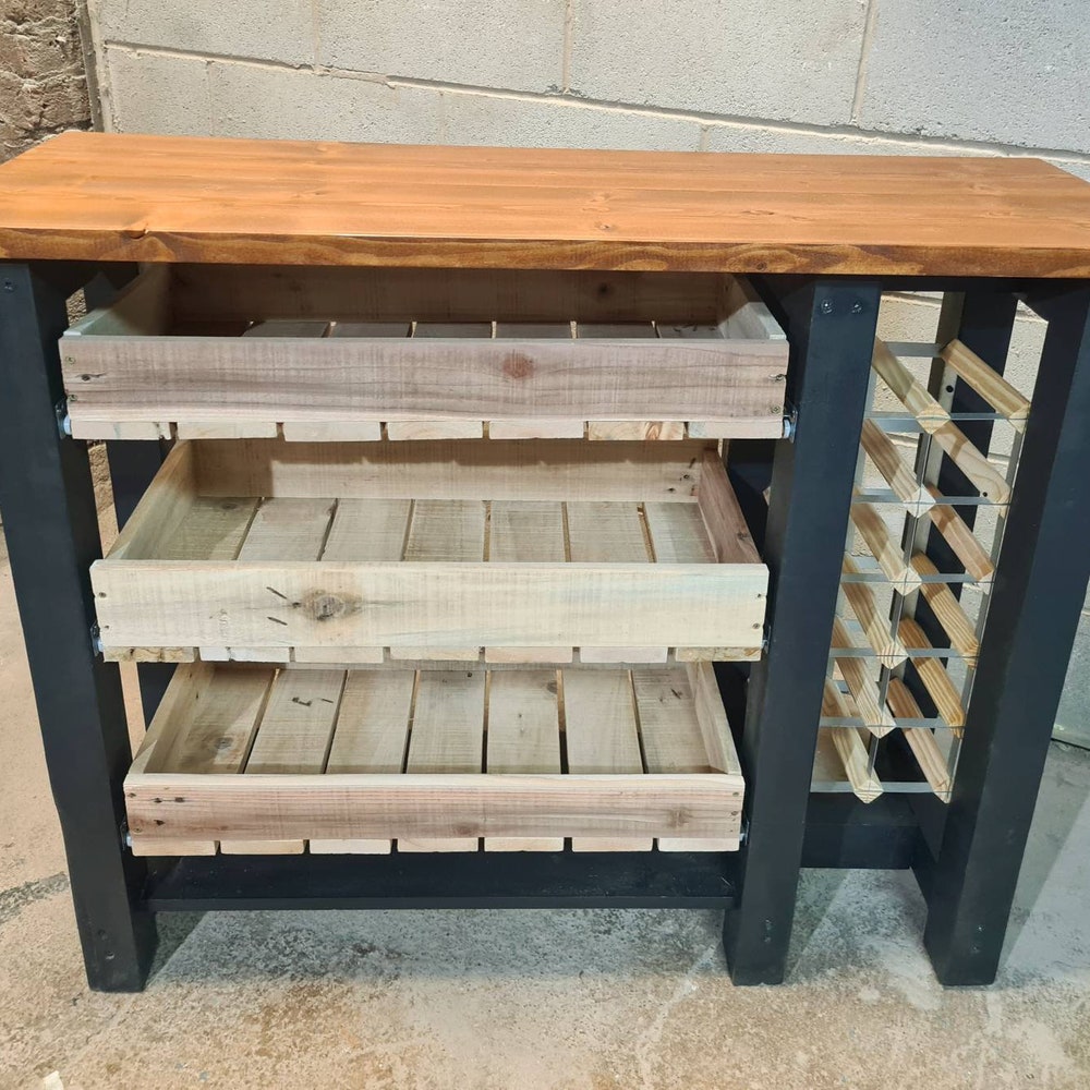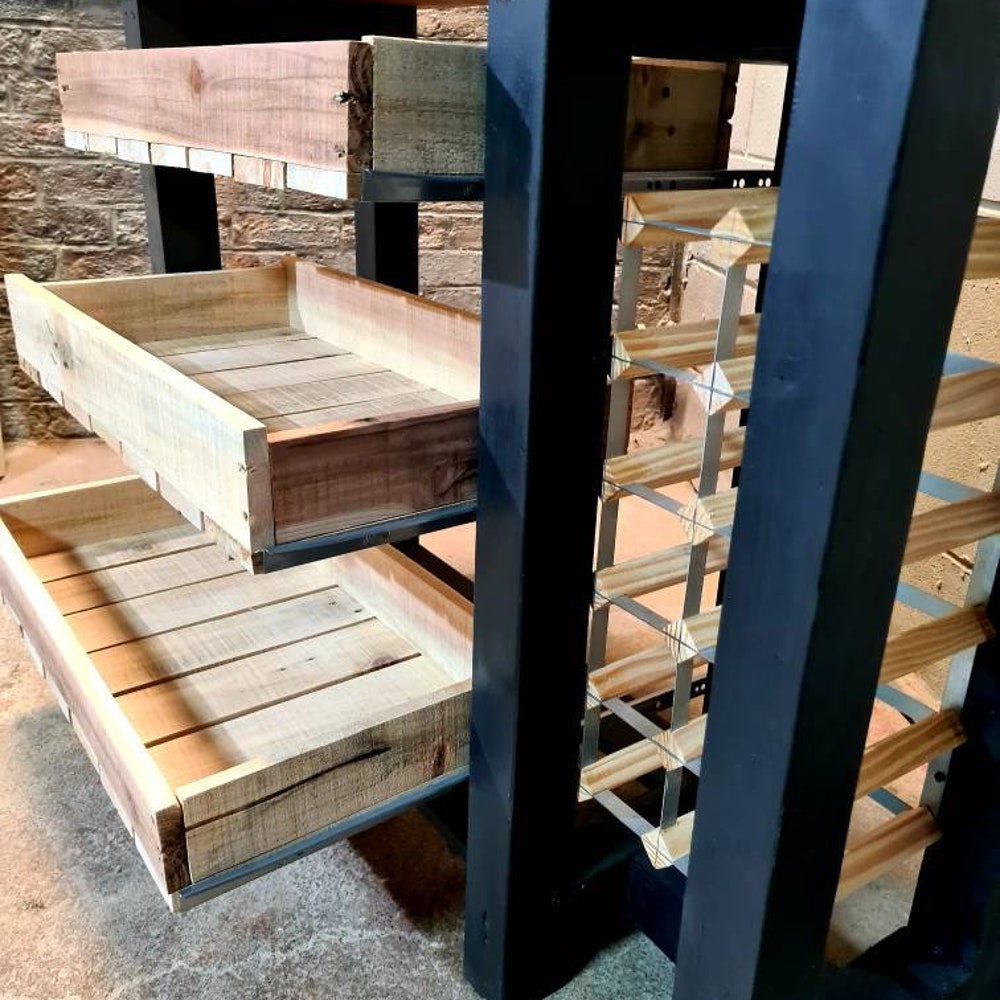 This beautiful console table features 3 drawers made of reclaimed pallet wood, a reclaimed scaffold top finished with osmo Amber oil, and has a 16 slots wine rack. Size:115cm lenght45cm depth80cm height The item can be costume made to any size you’d require, simply get in touch and I’ll be more than happy to discuss […]