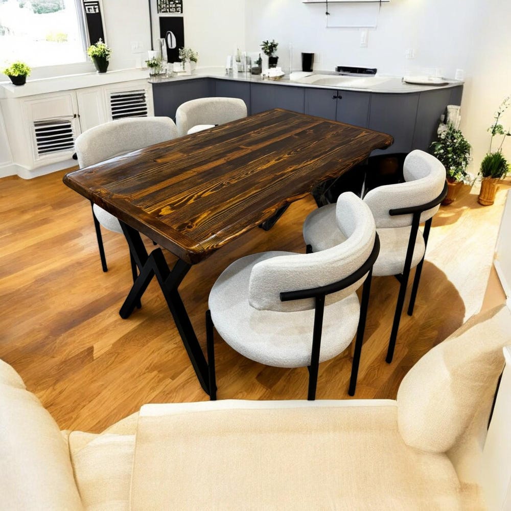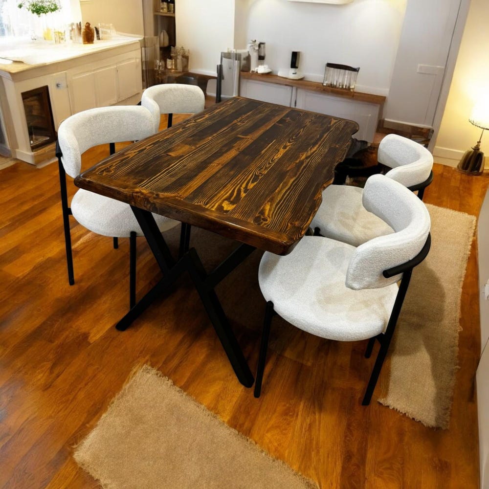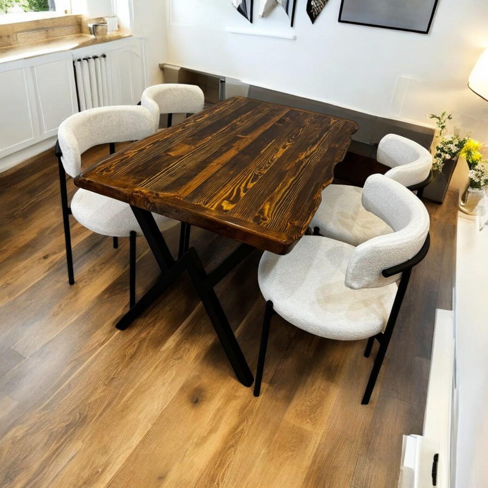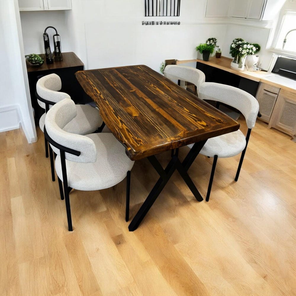 Rustic Live Edge Dining Table, Handmade Solid Wood Table with X Legs, Farmhouse Kitchen Table, Industrial Dining Room Table