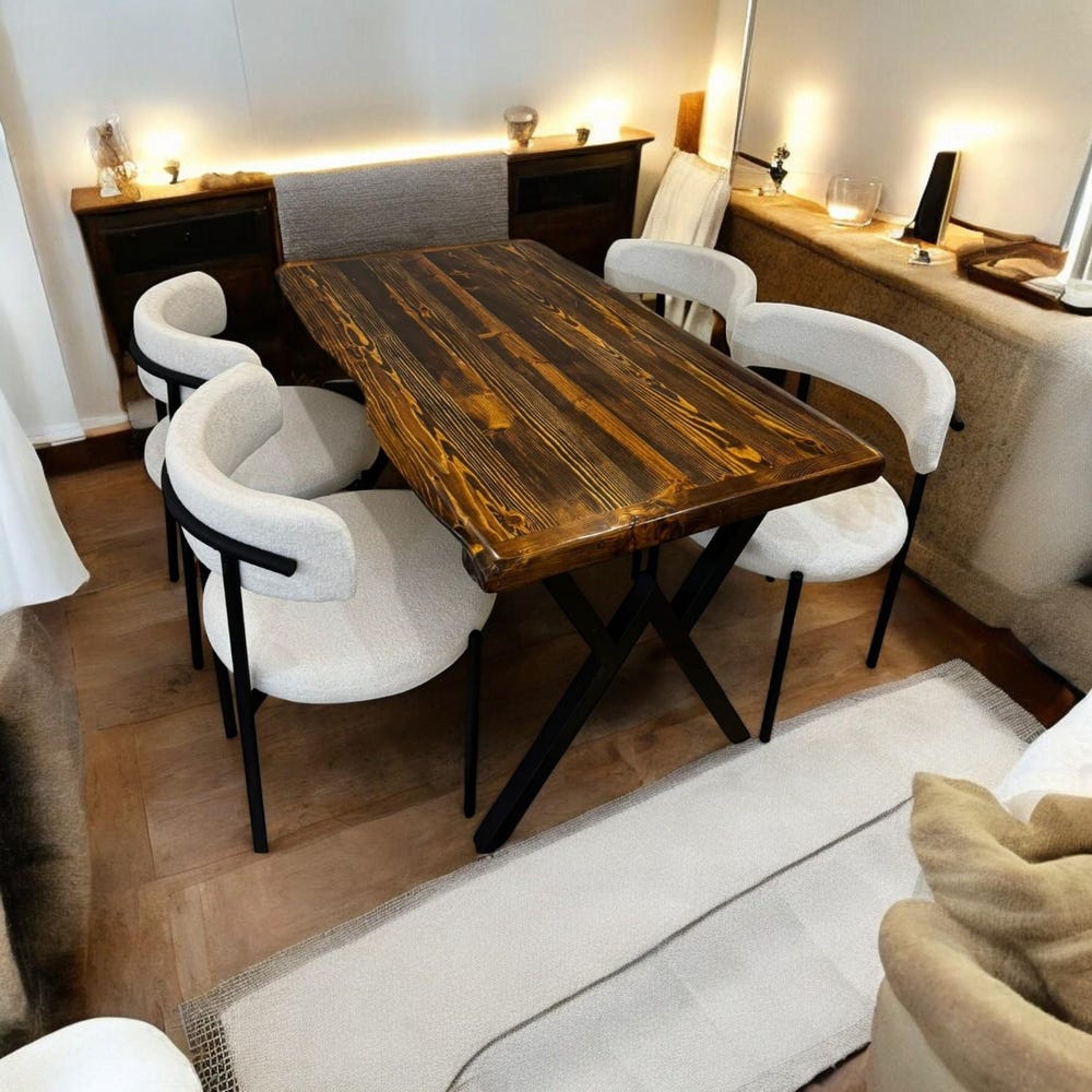 Bring timeless charm and handcrafted elegance to your dining area with this Rustic Wood Kitchen Table. Made from solid pine wood and supported by powder-coated steel legs, this table is more than just a piece of furniture—it’s a statement of warmth, durability, and natural beauty.
