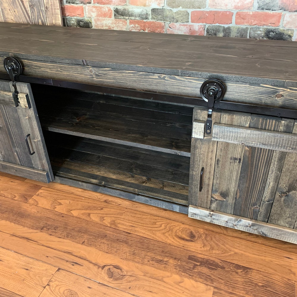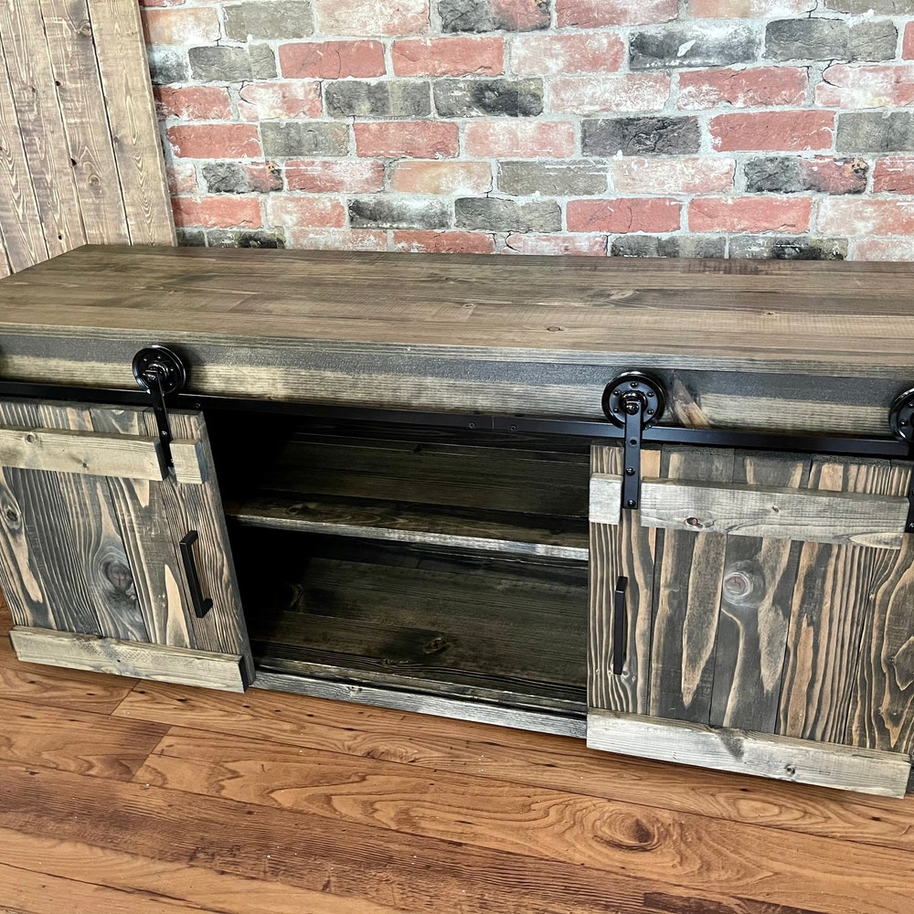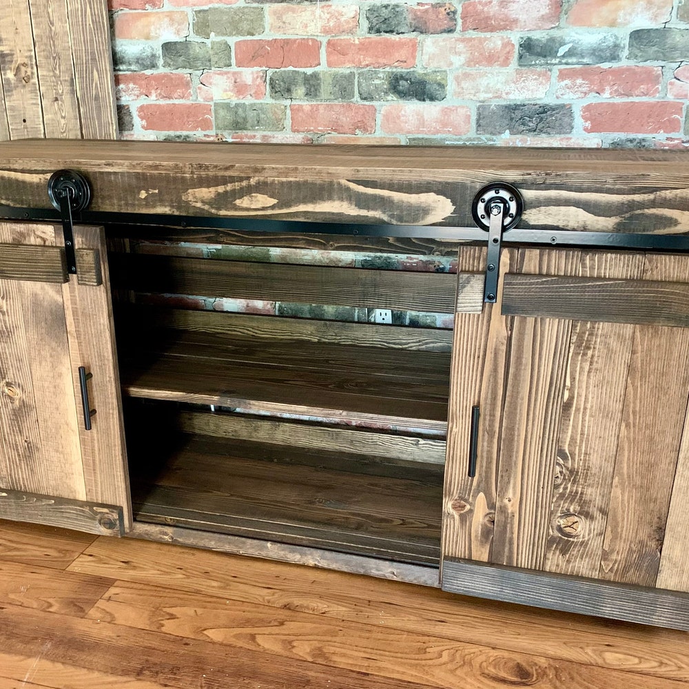 Rustic Media Stand Barn Doors TV Console Buffet Cabinet Coffee Bar Farmhouse Industrial perfect Gift