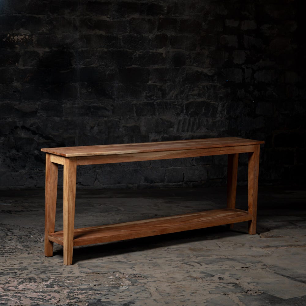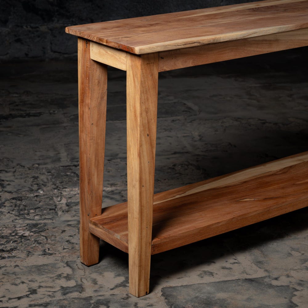 Rustic Neem Wood Console Table with bottom shelf for Additional Storage & Distinctive Design With Tapered Legs. Made from Reclaimed Wood.