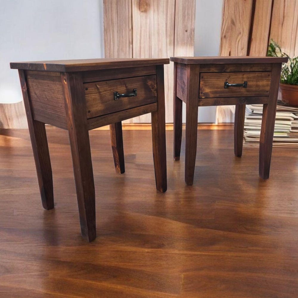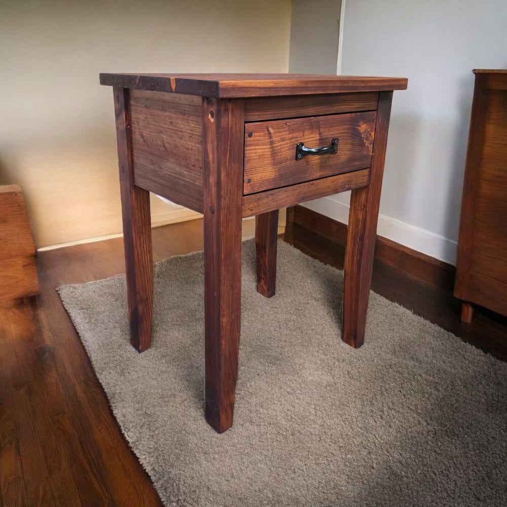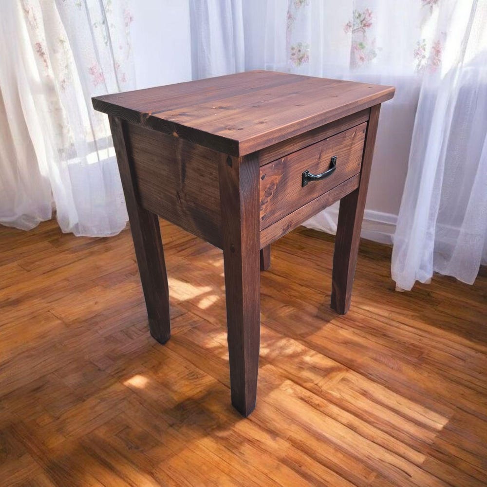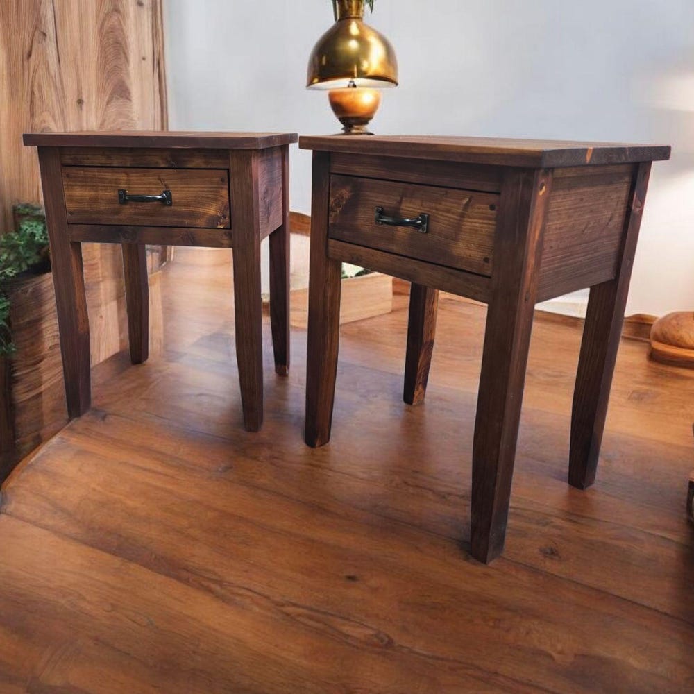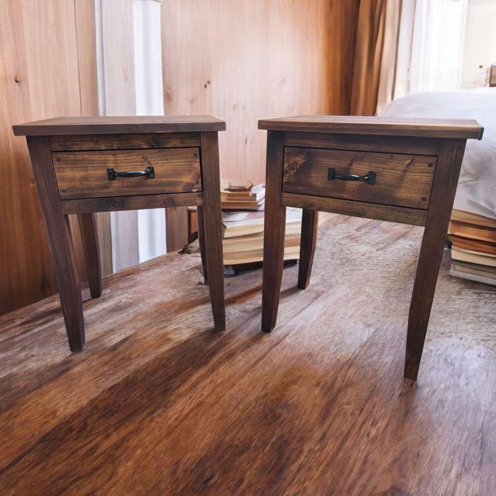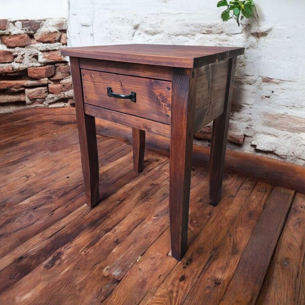 Rustic Bedside Table / Nightstand – Solid Wood with Drawer & Tapered Legs