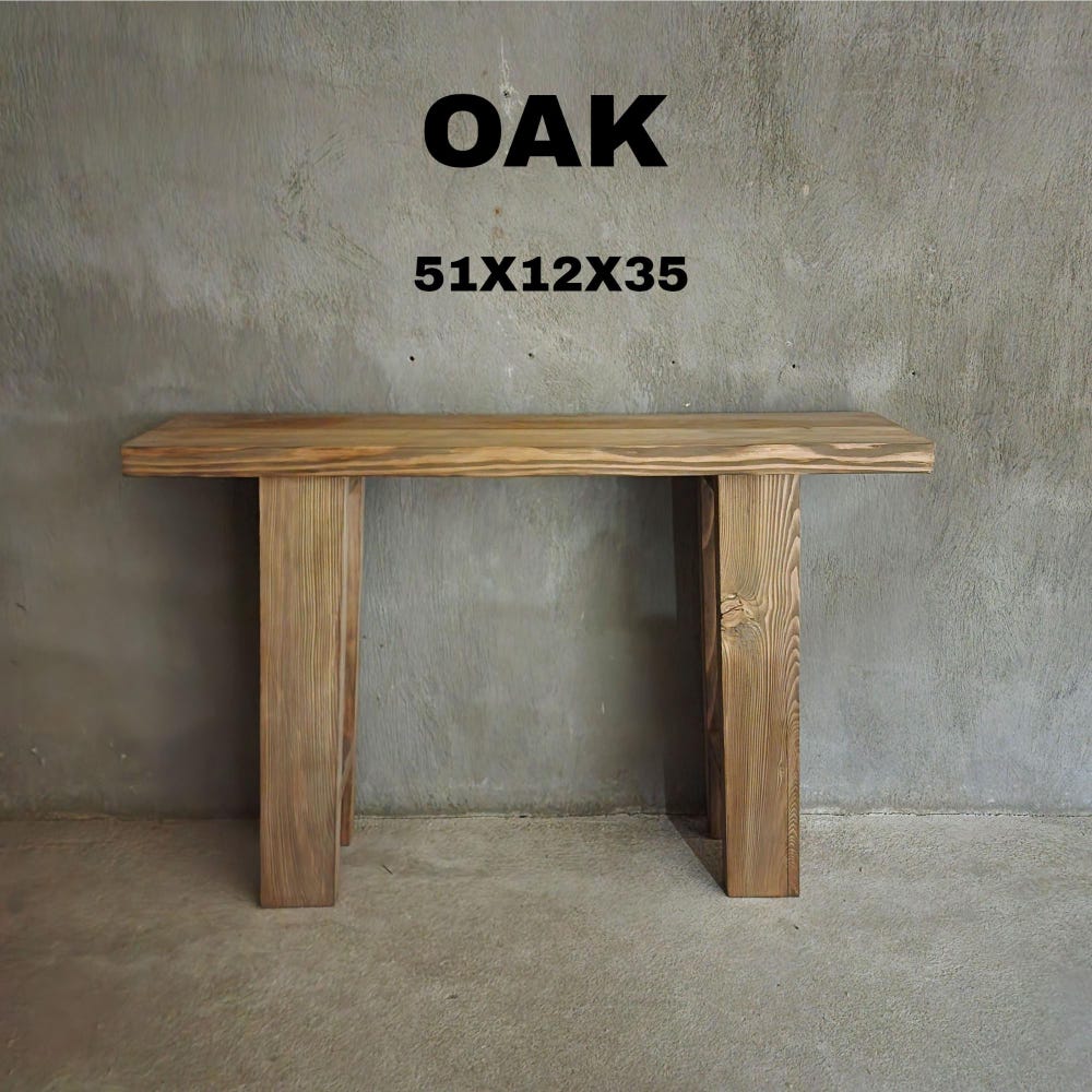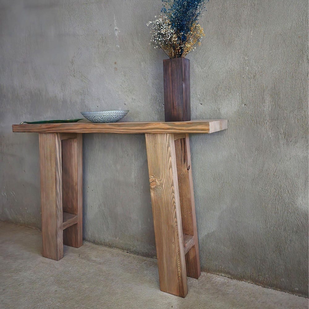Rustic oak console table, perfect for hallways, entryways, or living rooms with a farmhouse, vintage, or modern aesthetic.