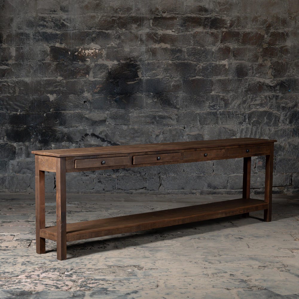 Rustic reclaimed Textured wood console table With Drawers and Shelf | Farmhouse Rustic Console table | Antique Finish | Entryway Console