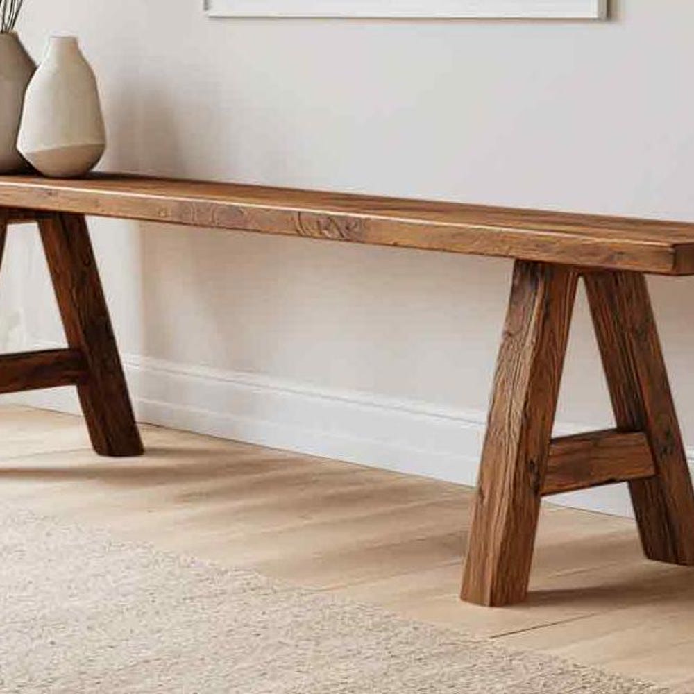 Rustic Reclaimed Wood Entryway Bench, Handcrafted Solid Chestnut Wood, Farmhouse Hallway Shoe Rack Bench/Seating,Garden Plant Bench
