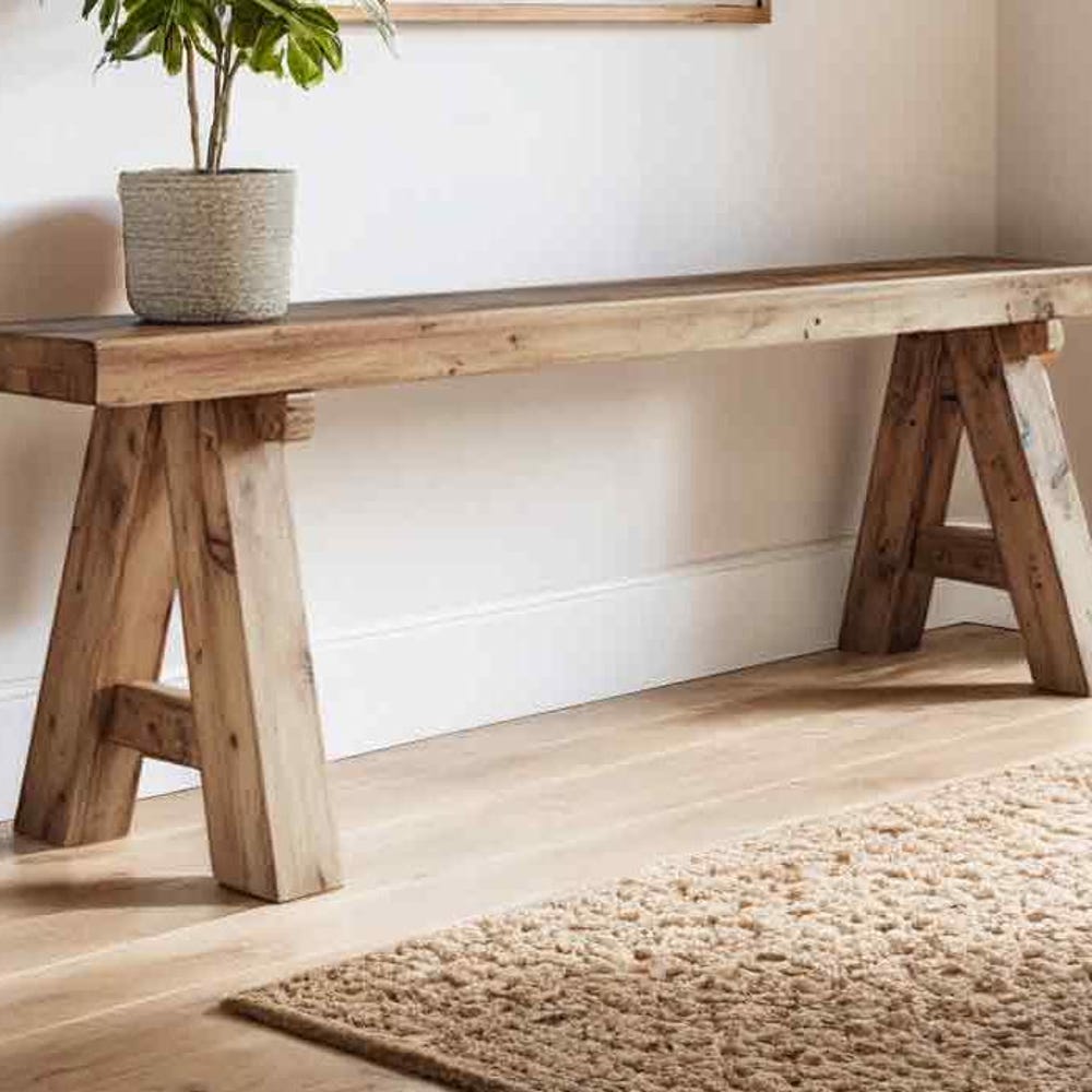 Rustic Reclaimed Wood Entryway Bench, Handcrafted Solid Chestnut Wood, Farmhouse Hallway Shoe Rack Bench/Seating,Garden Plant Bench