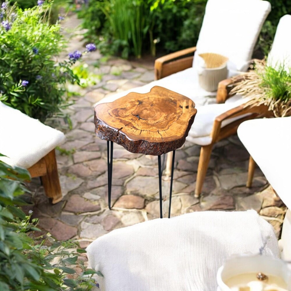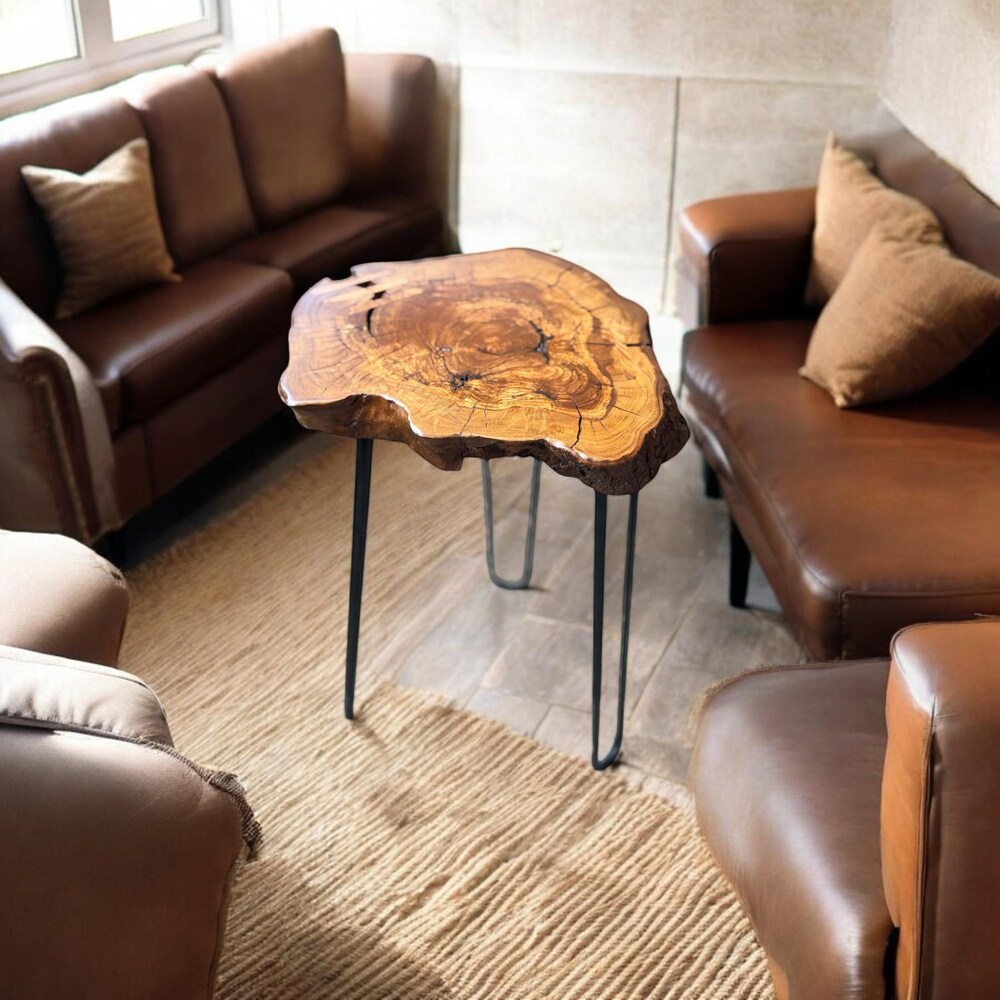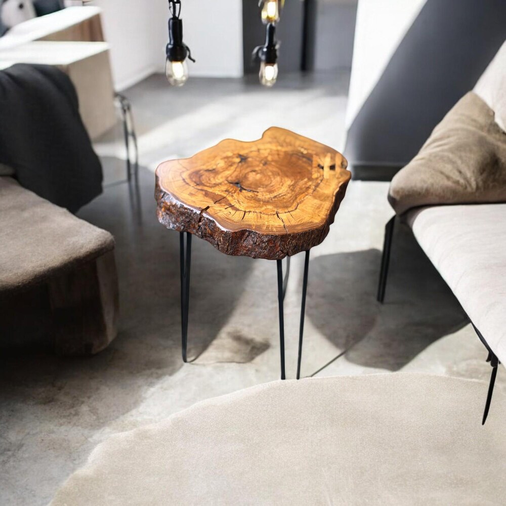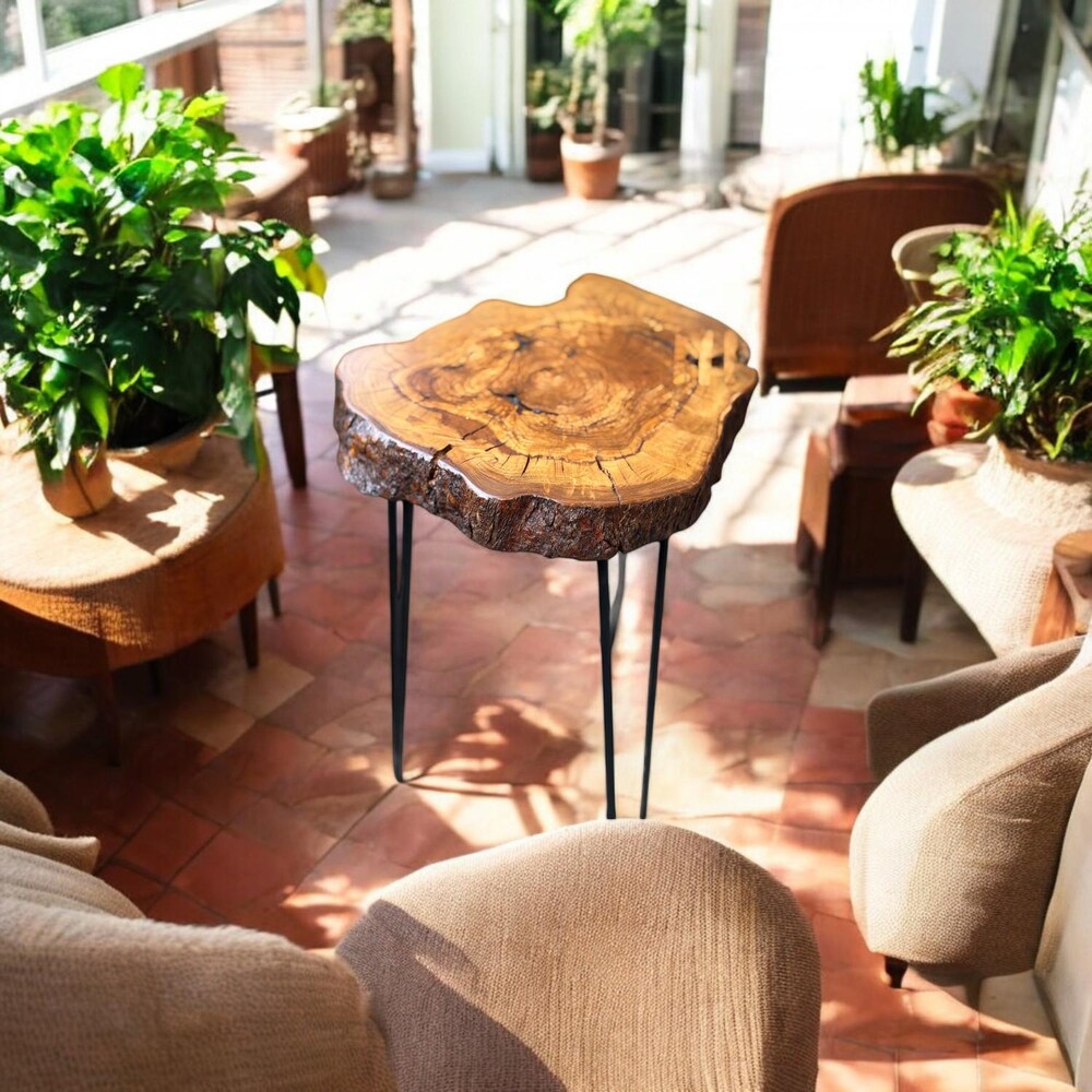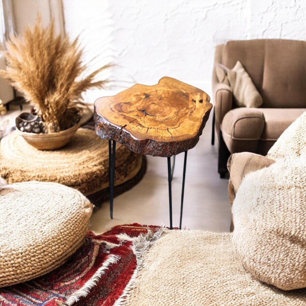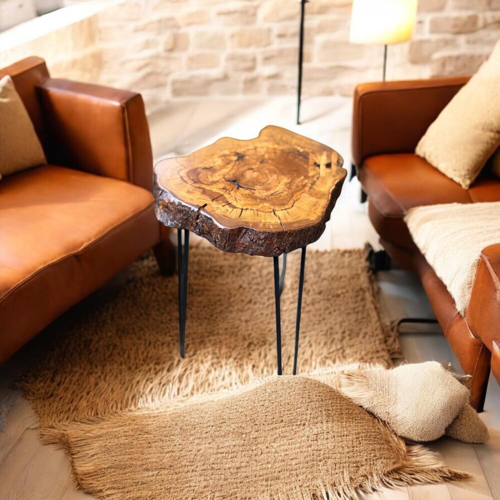 Bring a touch of nature into your living space with this handcrafted rustic root wood coffee table. Each table is uniquely made from live edge olive wood, showcasing the natural beauty and intricate grain patterns of the tree. The sturdy metal legs provide a modern contrast, ensuring durability and style.​ Features:*Made from solid olive wood […]