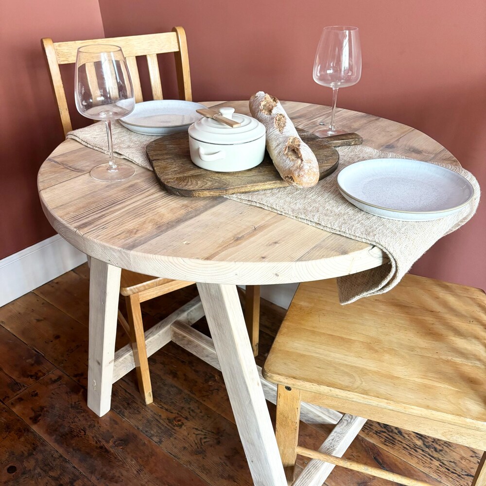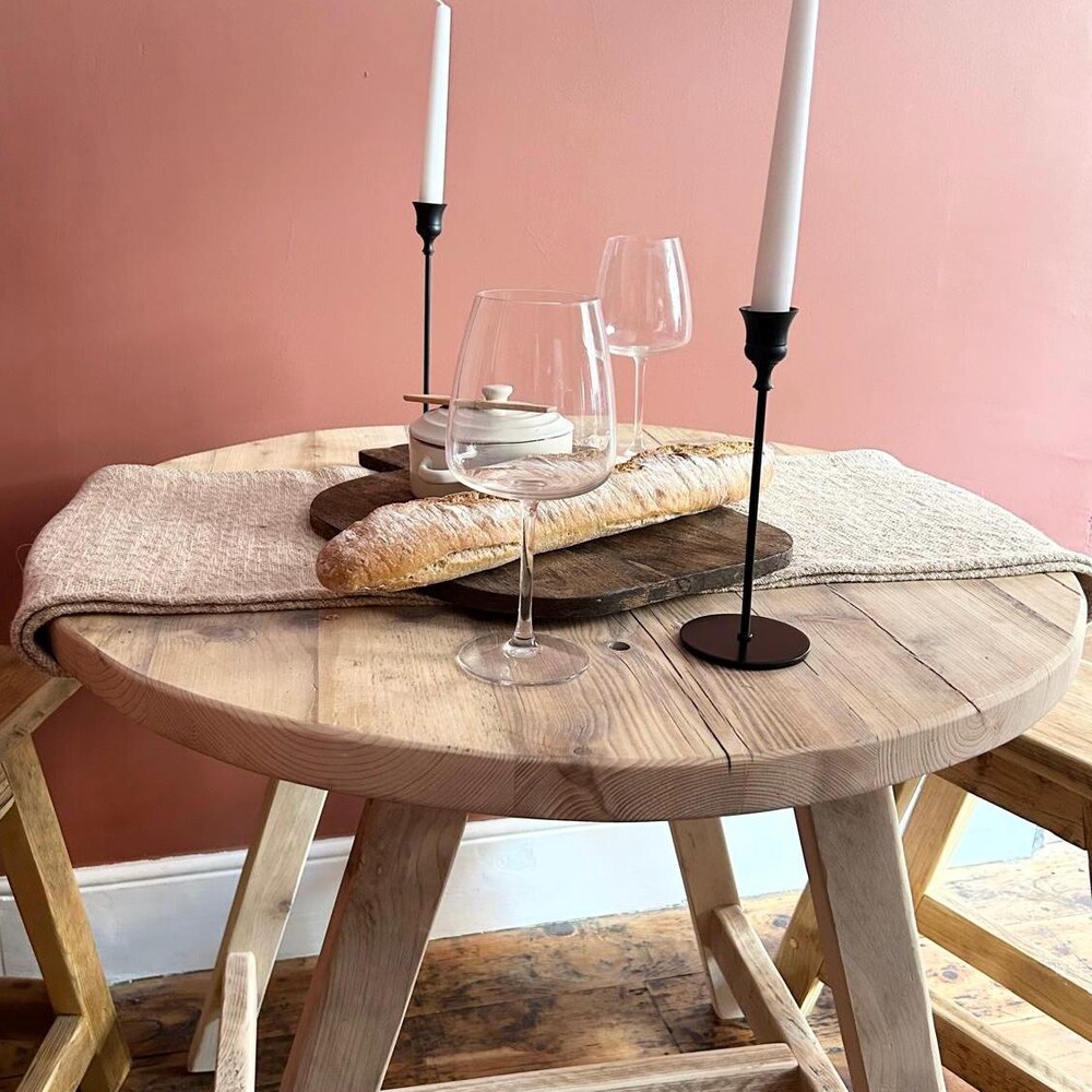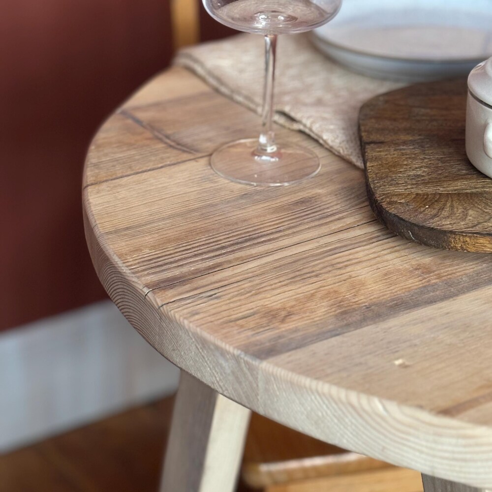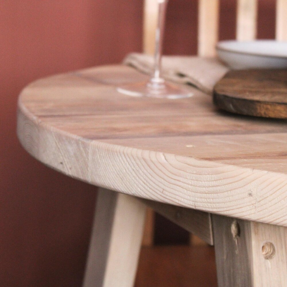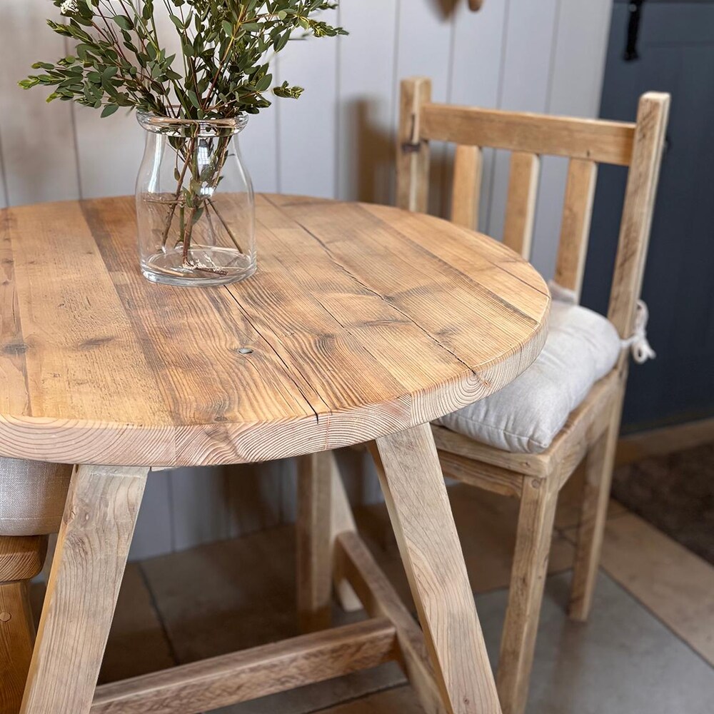 Your table top will be handmade to order from our locally sourced reclaimed pine timber. Items pictured are all 74cm in height. Main item featured is the Natural oil finish and 80cm in diameter.