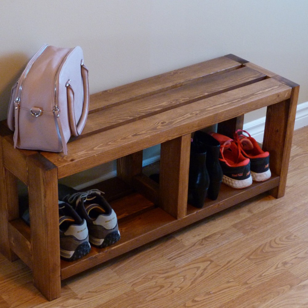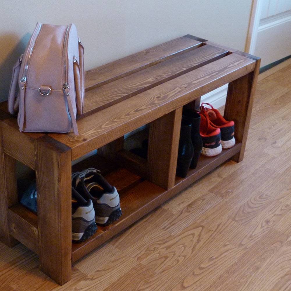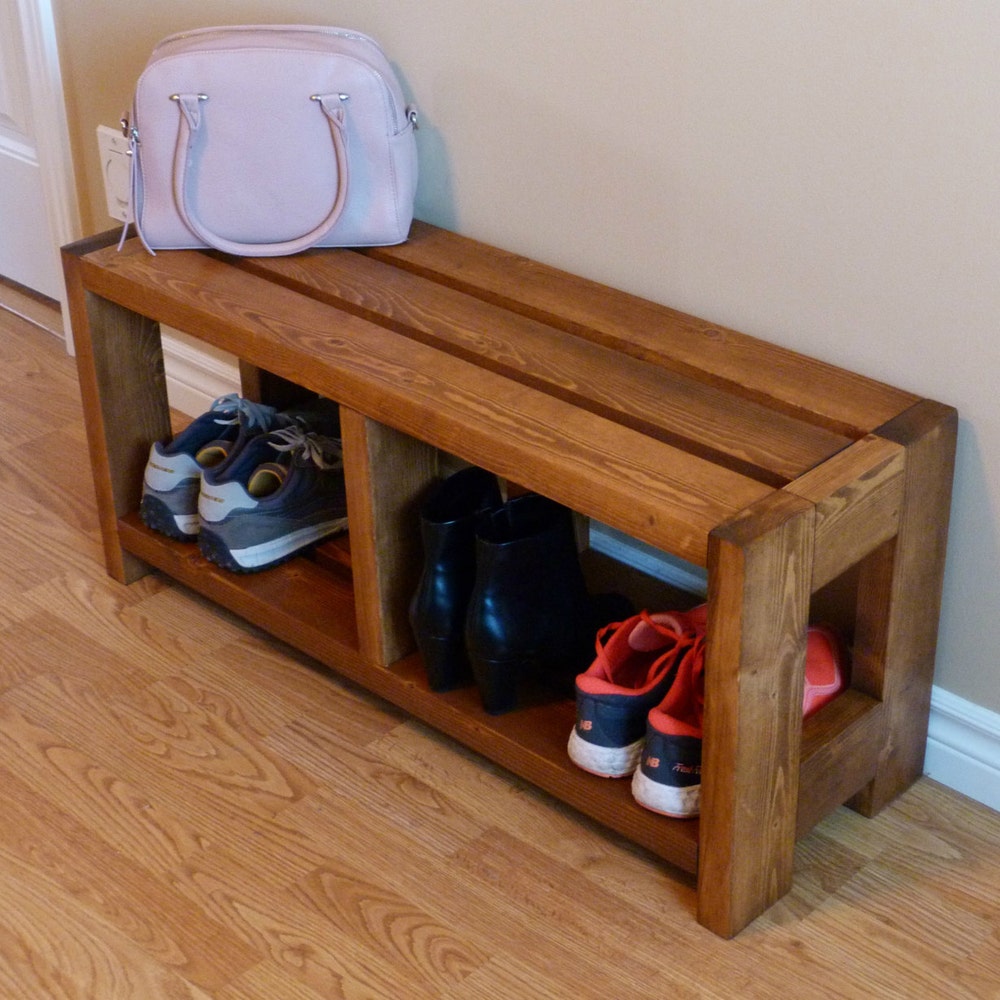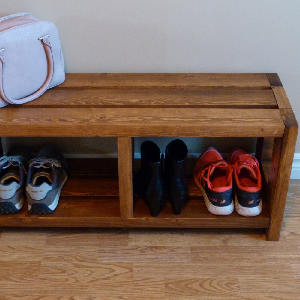Made of solid pine, this sturdy rustic style entryway, hallway or mudroom 2 shelves shoe organizer/bench is perfect for any home, apartment or condo.