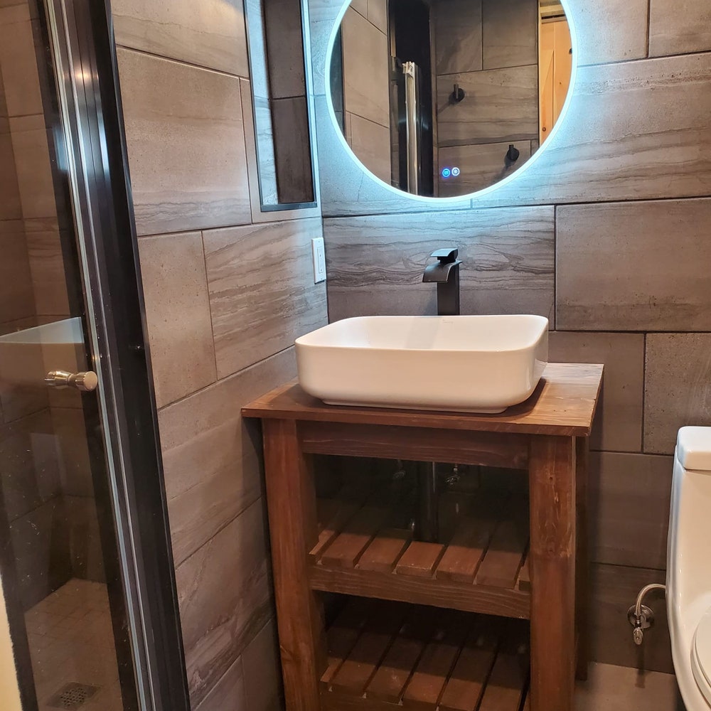 Transform your bathroom into a sanctuary of rustic charm with our handcrafted solid wood bathroom vanity. This versatile piece is not only a functional asset to your space but also a testament to enduring style and quality craftsmanship.