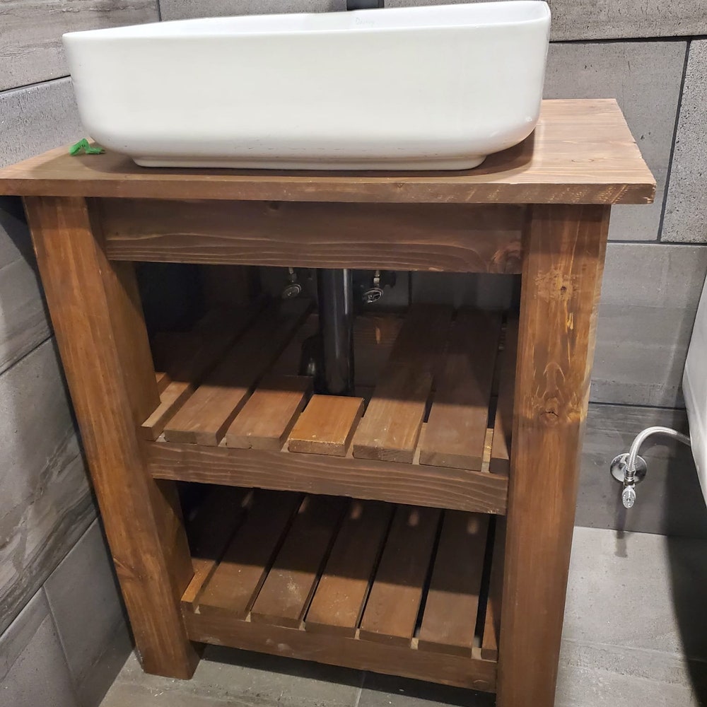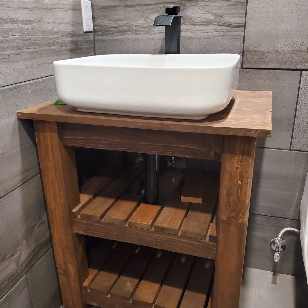 Rustic Solid Wood Bathroom Vanity with Open Shelving – Custom Handcrafted