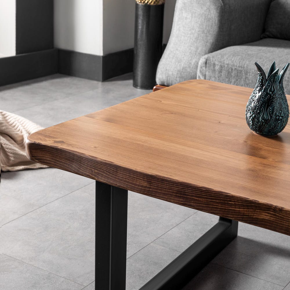 Rustic Solid Wood Coffee Table with Metal Legs, Live Edge Wooden Table & Handmade Industrial Wooden Coffee Table with U Shaped Legs.