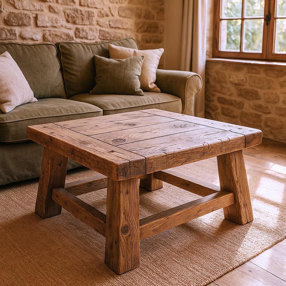 Rustic Square Coffee Table – Reclaimed Wood Living Room Table – Farmhouse Style Center Table – Handmade Solid Wood Coffee Table