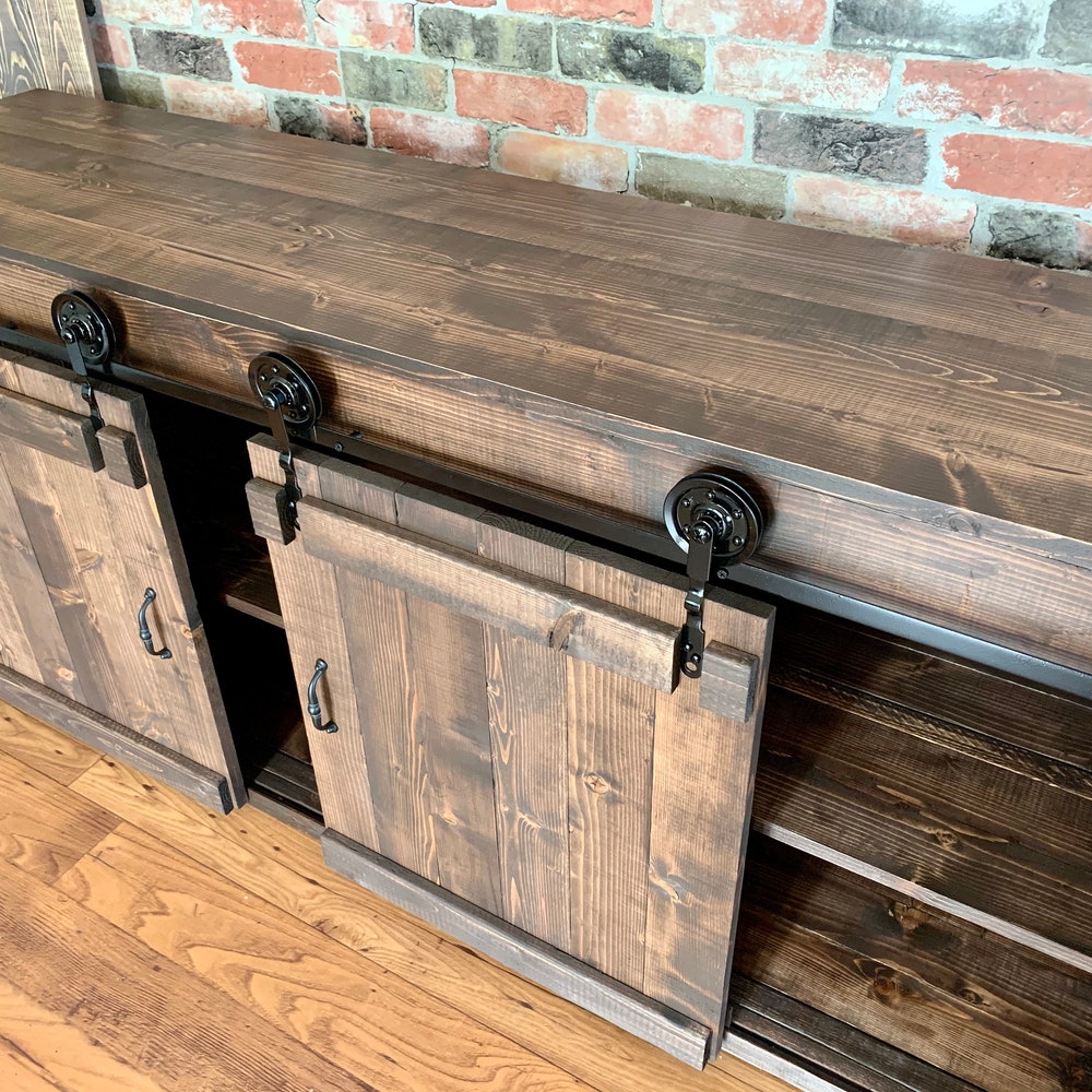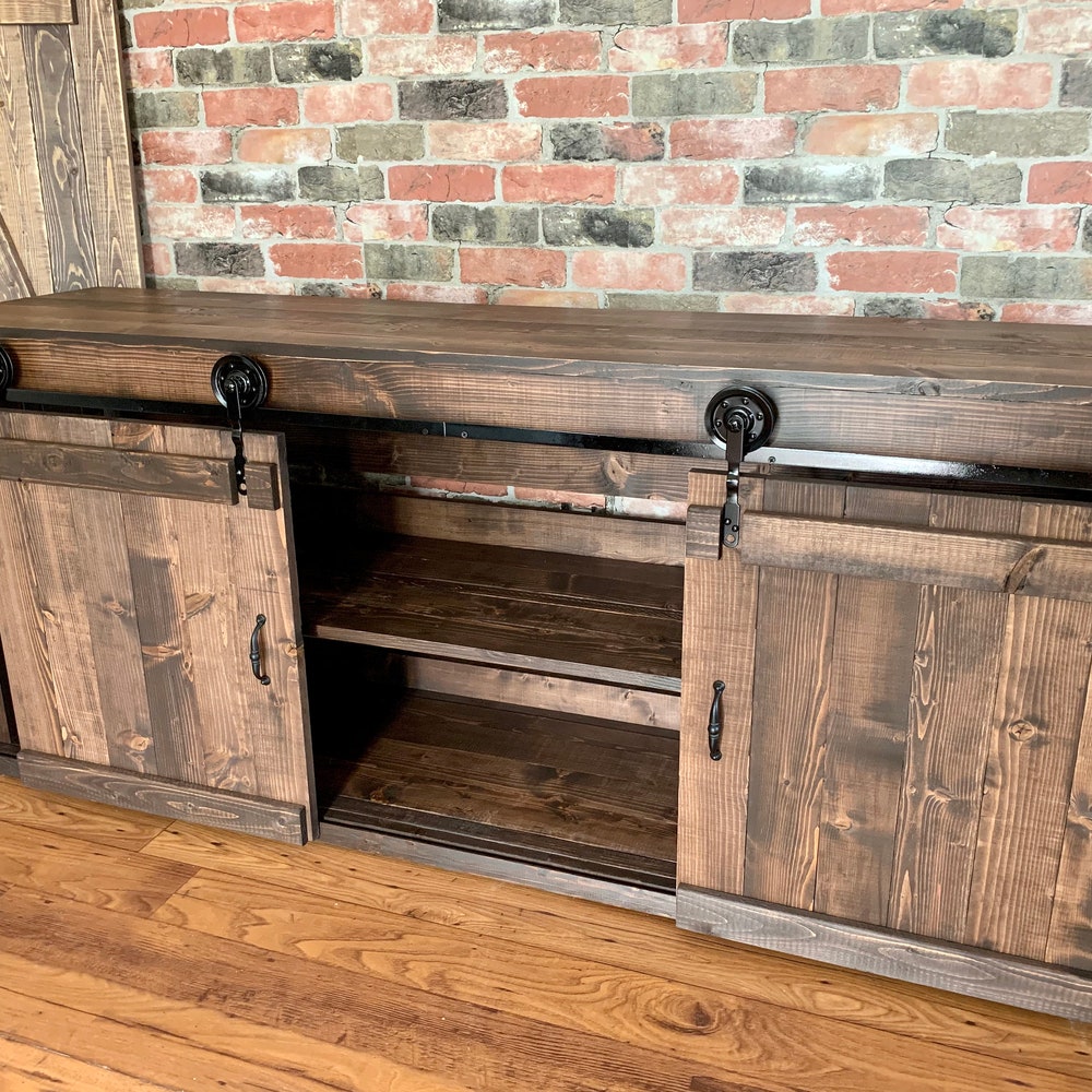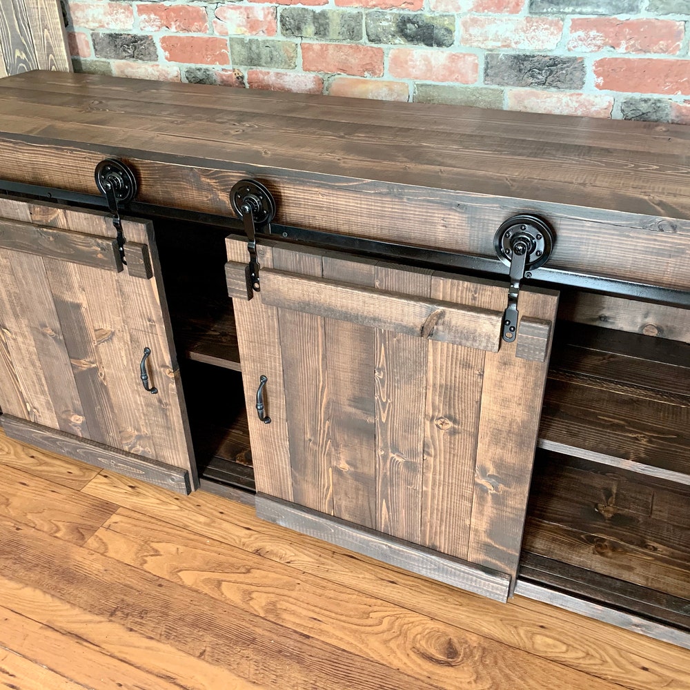 Rustic TV Stand Barn Doors Media Console Buffet Cabinet Coffee Bar Kitchen Island Farmhouse perfect Gift
