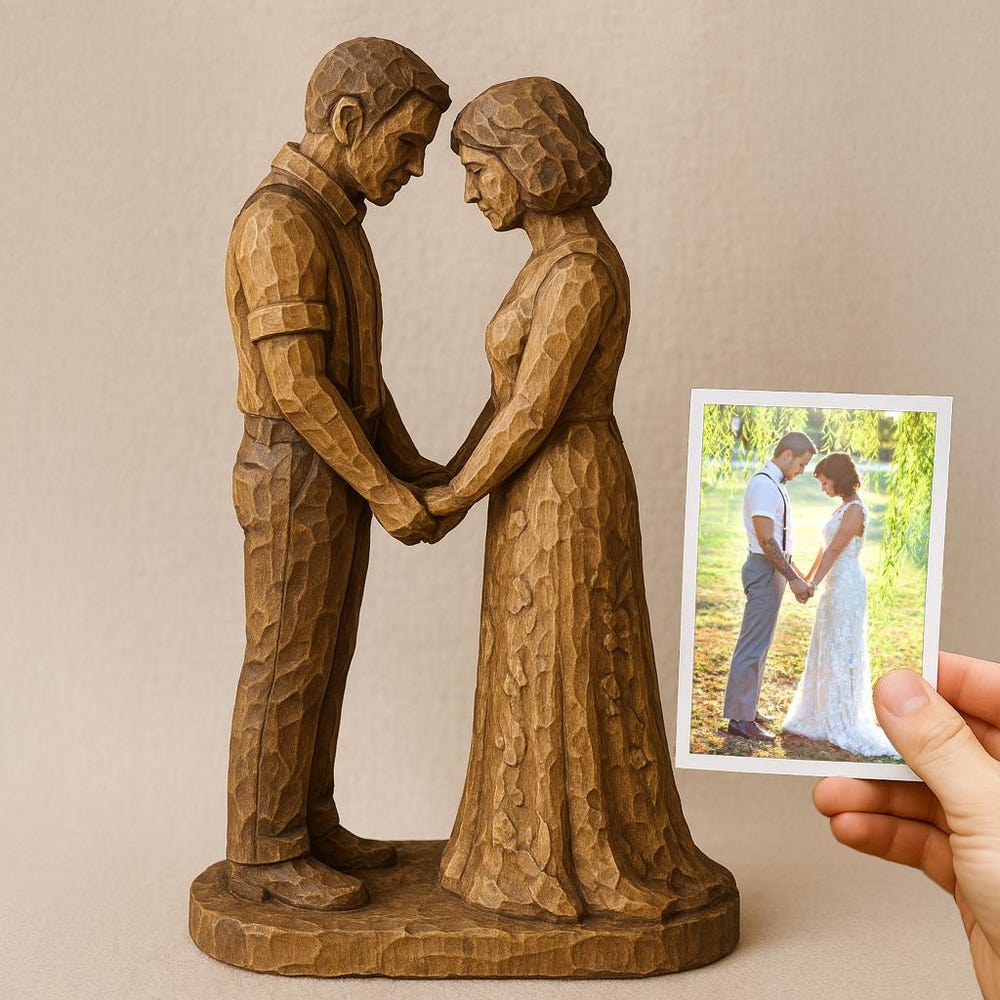Turn your most cherished moment into an everlasting piece of art. This exquisite wooden sculpture, custom-carved from your photo, is the perfect way to honor your special day. Whether gifted at weddings or displayed at home, this one-of-a-kind piece captures the essence of your bond with natural elegance and heartfelt detail. A perfect custom gift for couples, anniversaries, weddings, or newlyweds looking to preserve their memory in beautifully carved natural wood.