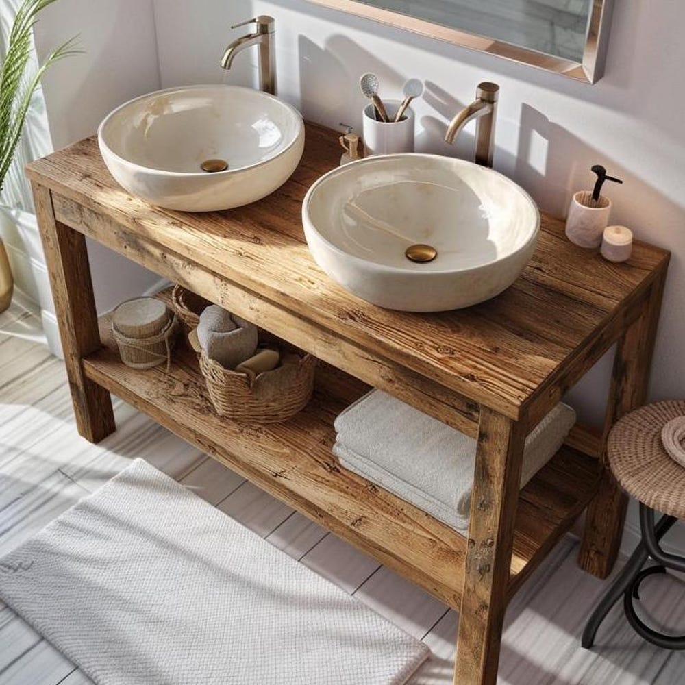 Rustic Wood Bathroom Vanity This handmade wooden bathroom vanity adds a warm and stylish touch to your space with its natural rustic look. Made from solid wood, it is durable and built to last. The double vessel sinks offer both elegance and functionality, making your bathroom more convenient. The spacious countertop provides enough room for […]