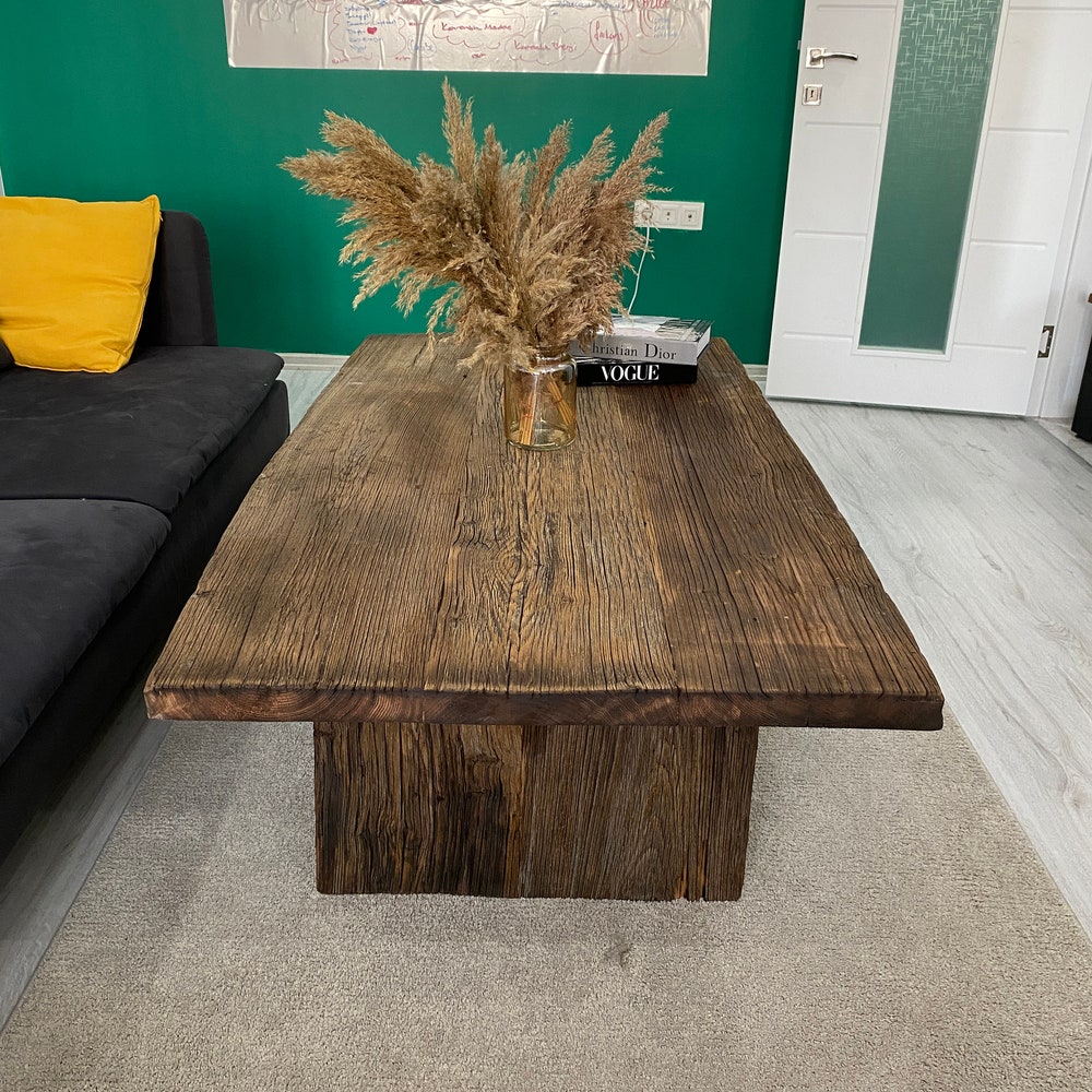 Rustic Wood Coffee Table,Large Coffee Table Reclaimed Wood, Unique Mid Century Top Live Edge Solid Rectangular Custom Farmhouse Wooden Table