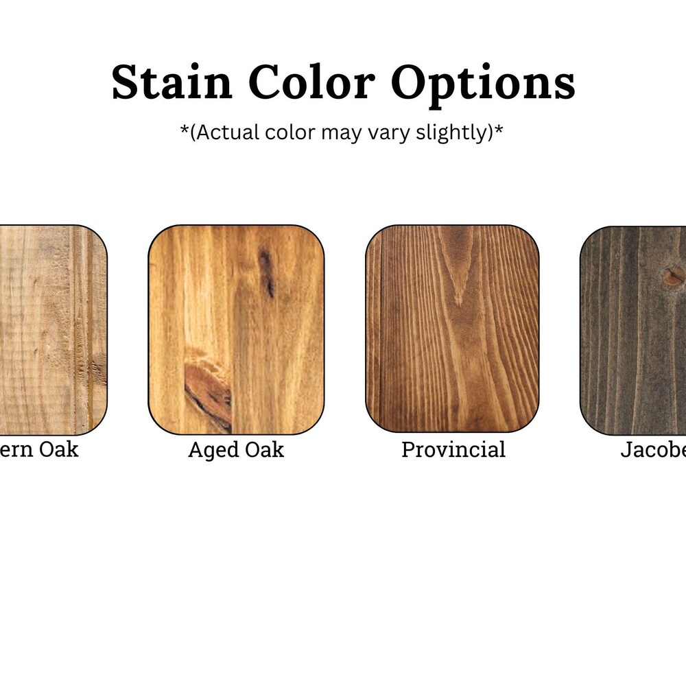 | Your Stain Color | DIY – Unfinished, Modern Oak, Aged Oak, Provincial, Jacobean |