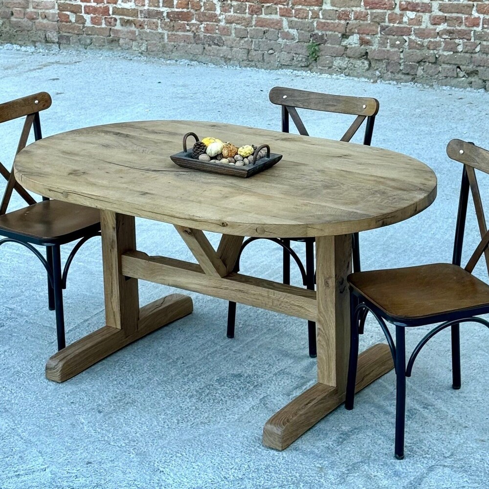 Rustic Wood Oval Dining Table, Oval Small Kitchen Table, Solid Oak Dining Table…