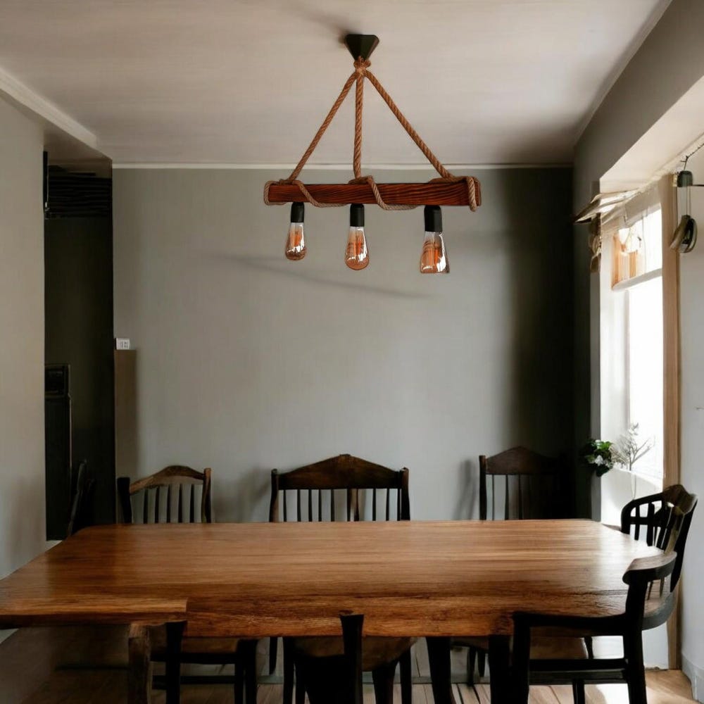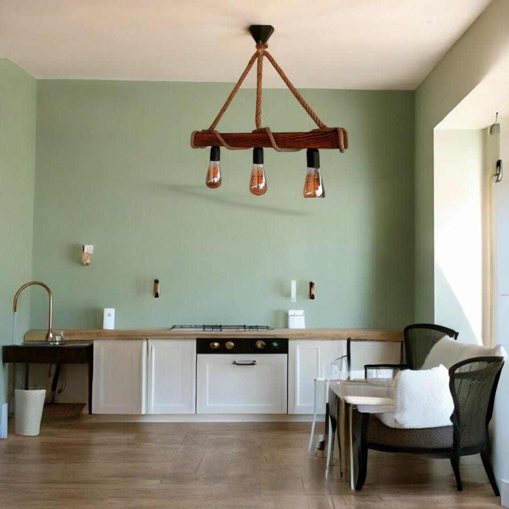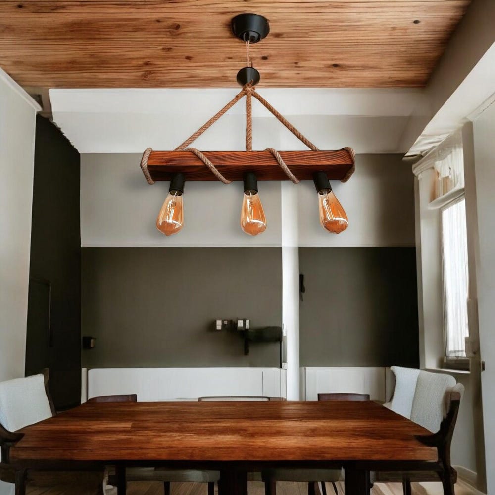 Rustic Wood Rope Pendant Light, Handmade Farmhouse Ceiling Lamp, Industrial Edison Bulb Chandelier, Natural Hanging Light Fixture